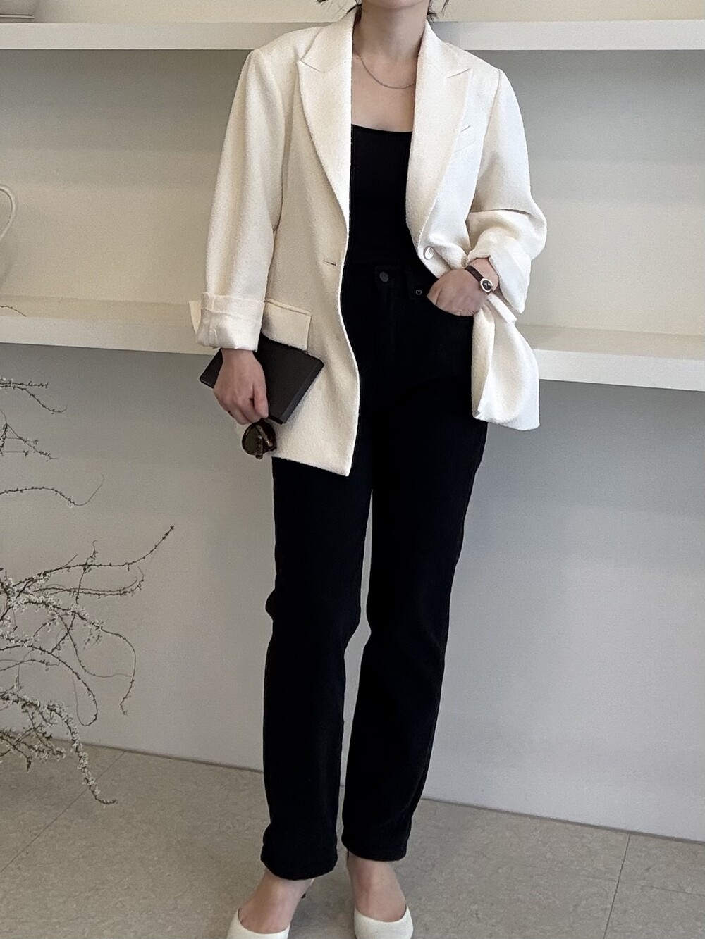 2버튼의 허리라인이 강조된 라인자켓으로 네이비컬러에 이어 오랜만에 오픈되는 자켓입니다.