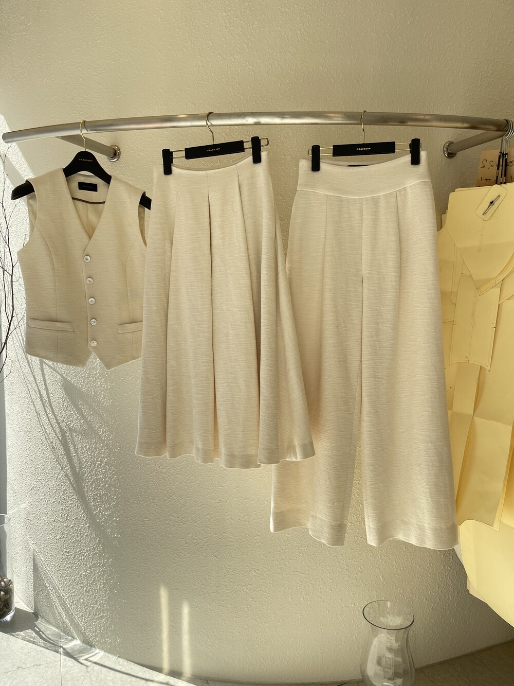 톡톡한 질감과 크리미한 컬러임에도 불구하고 부하지 않게 똑 떨어지는 실루엣이 매력적입니다.