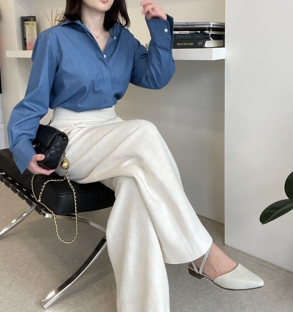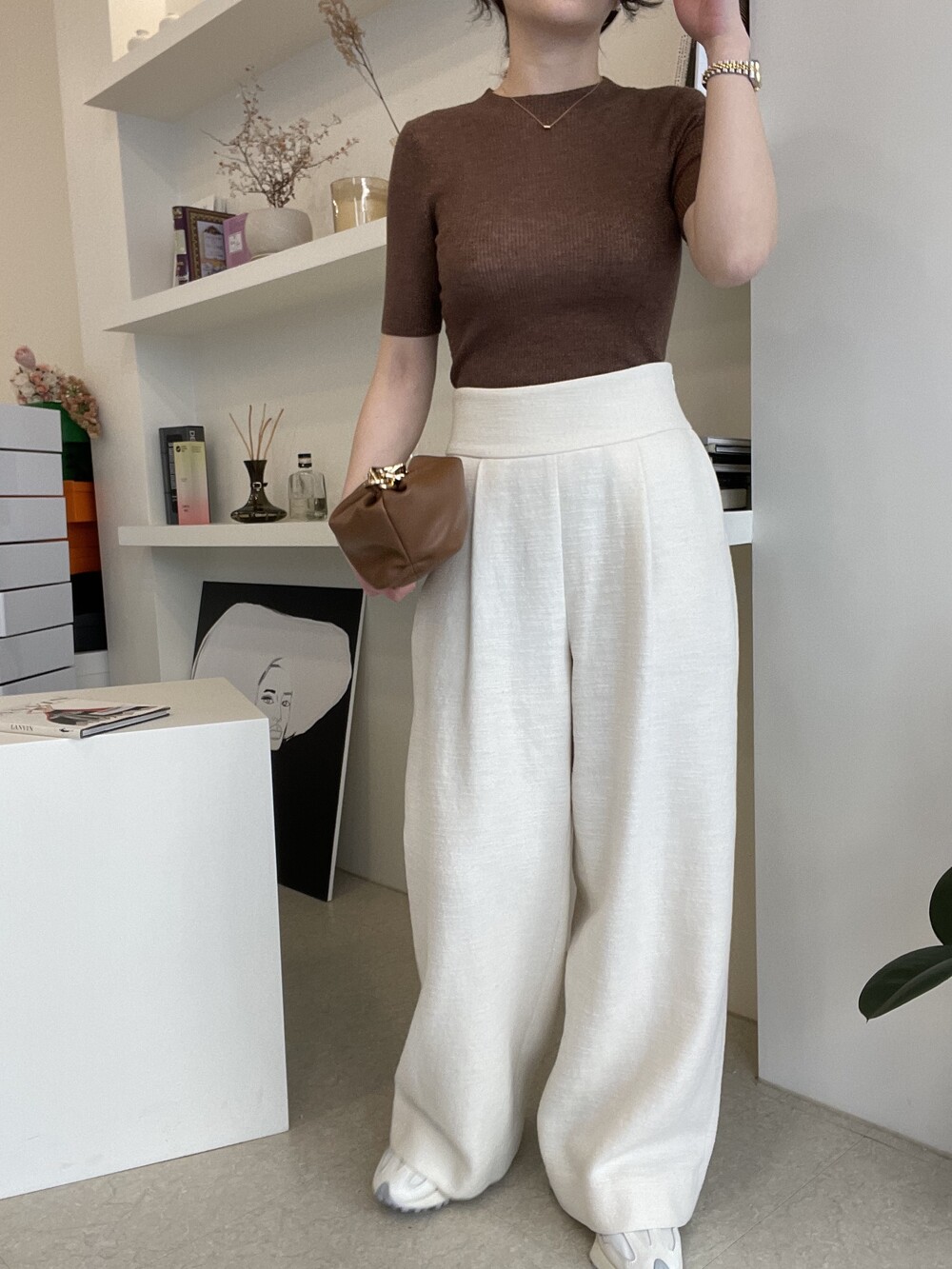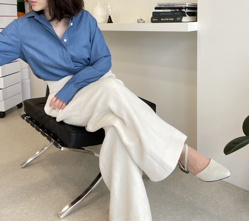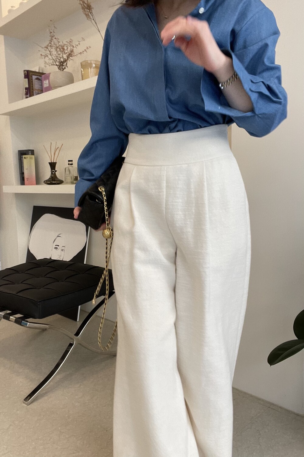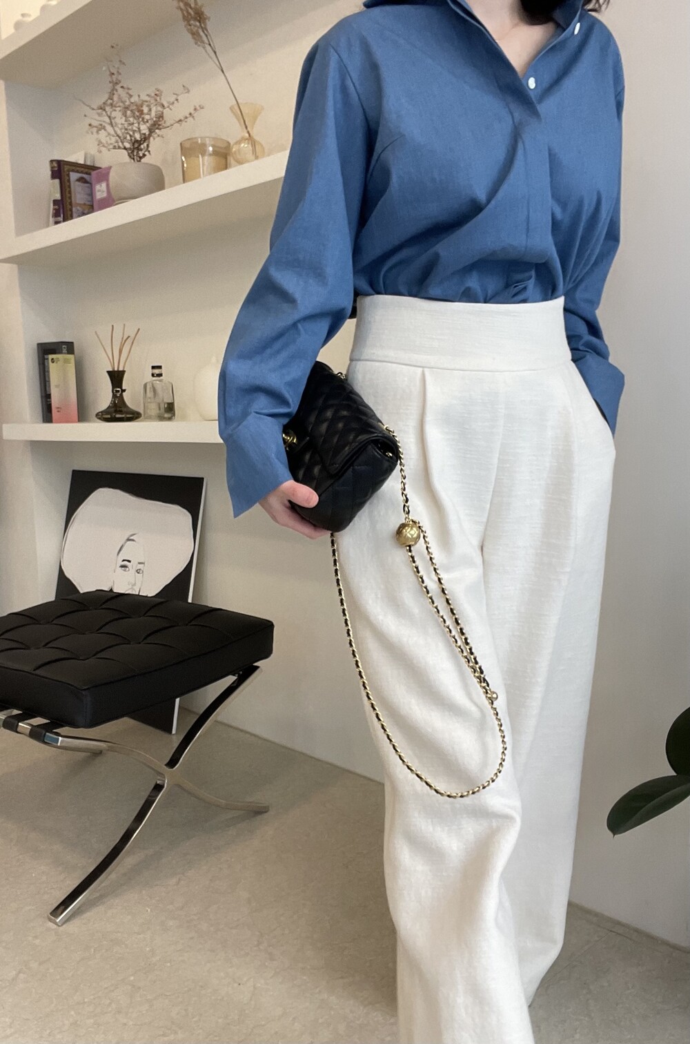 드레시하게 즐기기에도 좋지만 편한 슈즈와 이지한 아이템들과 잘 입어지기에 이 팬츠 하나 덕분에 옷장에서 믹스매치 될 녀셕들이 꽤 많아 옷입기 즐거워지실거에요.