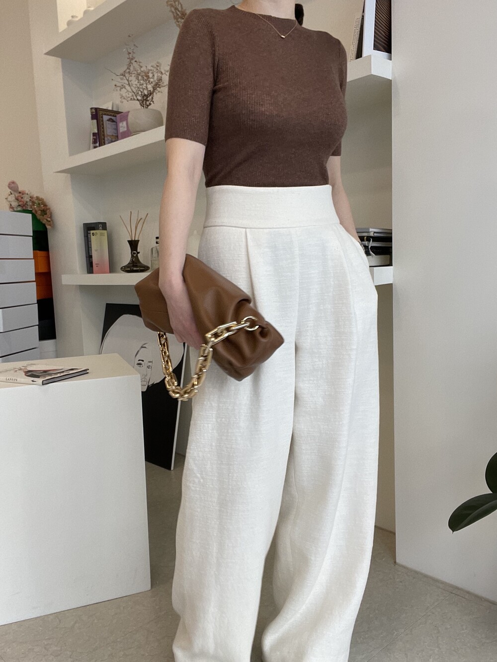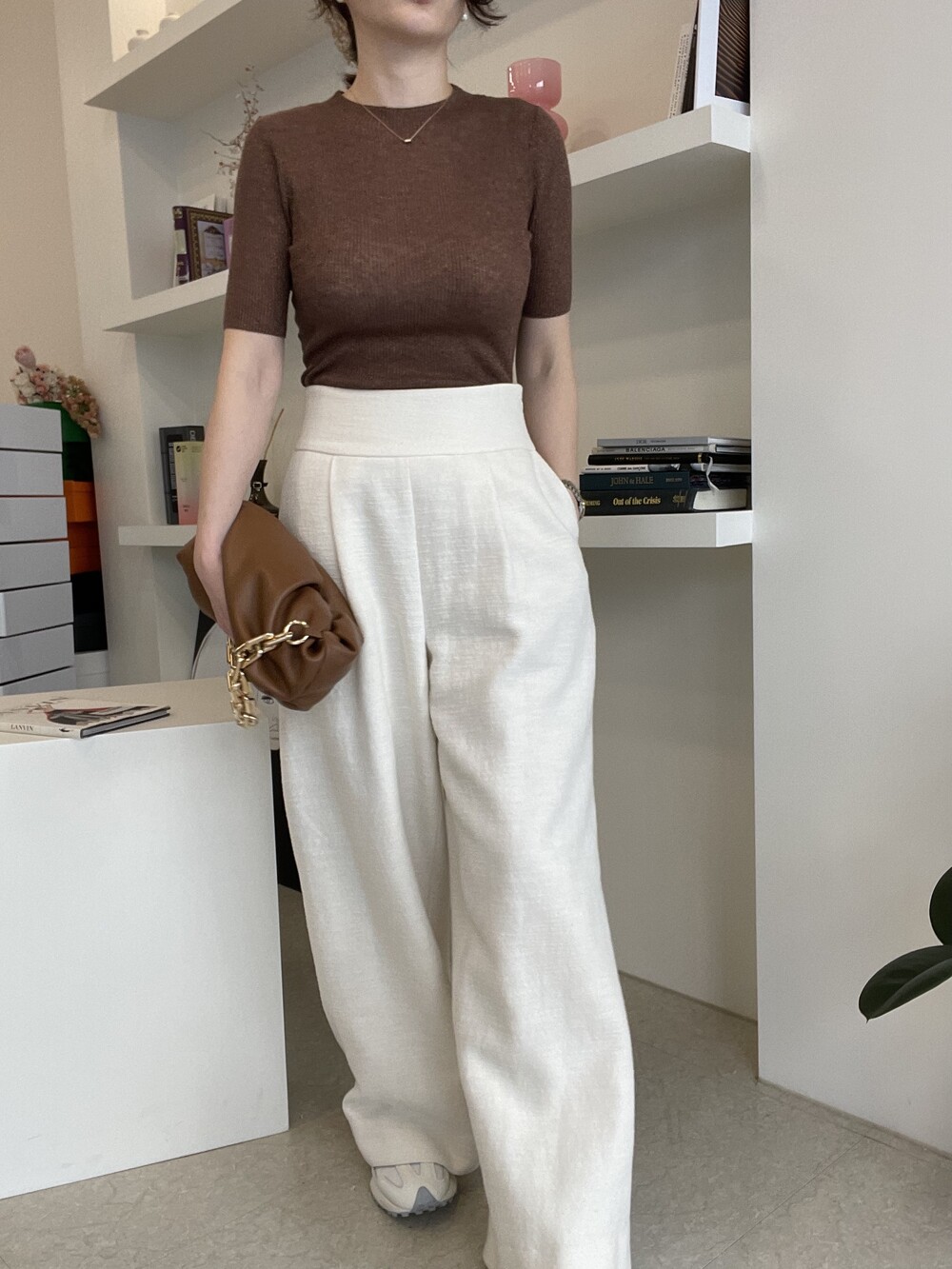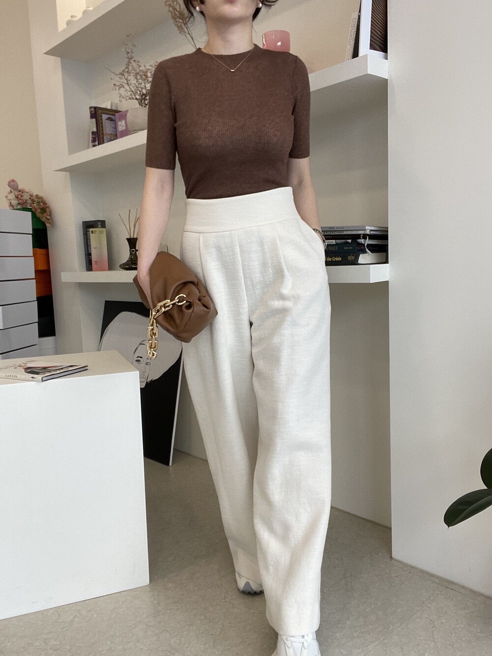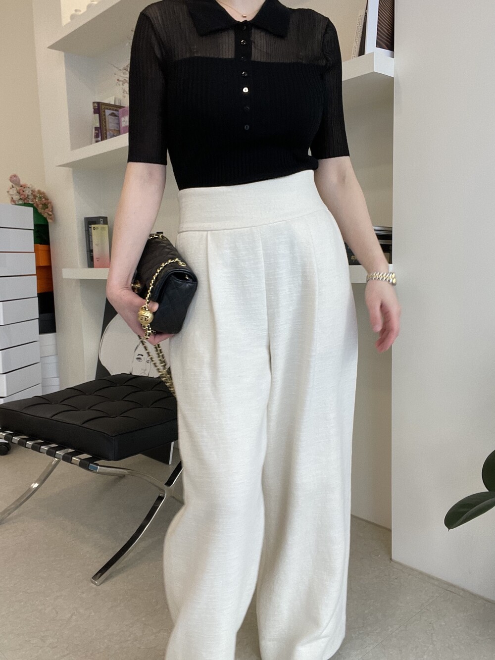 드레시하게 즐기기에도 좋지만 편한 슈즈와 이지한 아이템들과 잘 입어지기에 이 팬츠 하나 덕분에 옷장에서 믹스매치 될 녀셕들이 꽤 많아 옷입기 즐거워지실거에요.