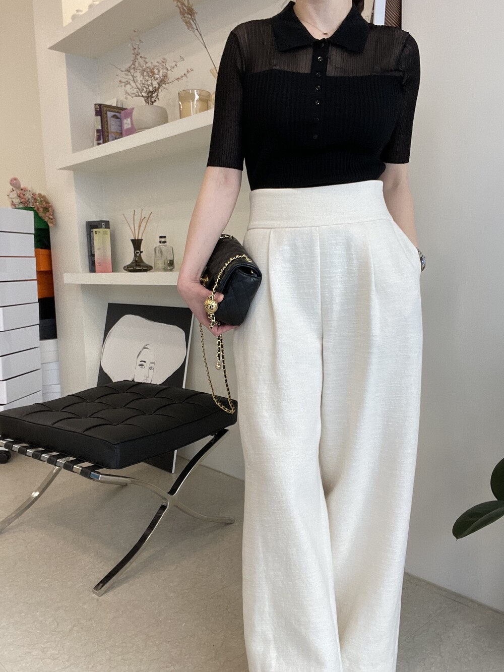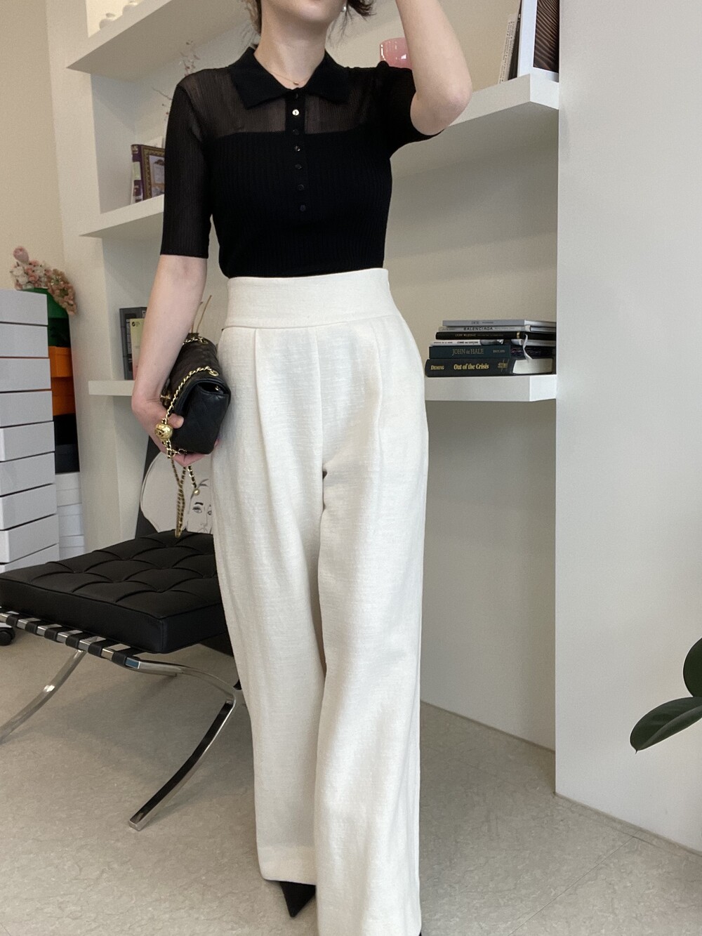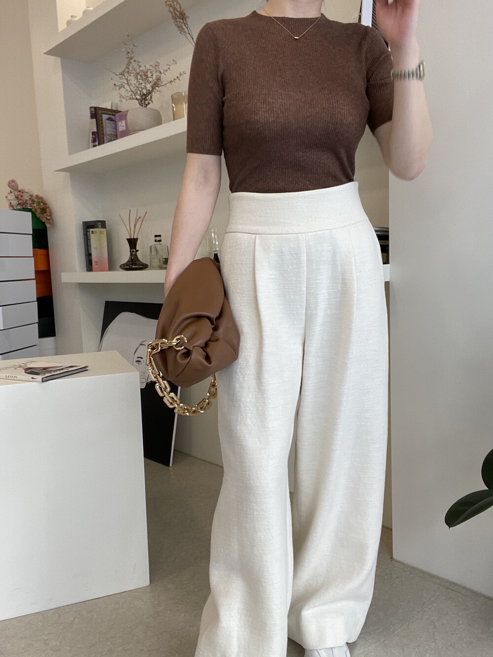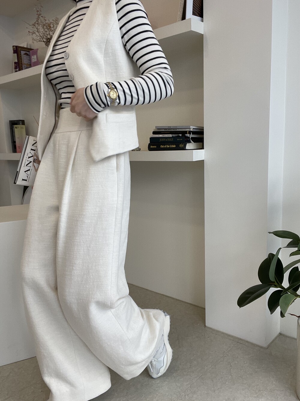 드레시하게 즐기기에도 좋지만 편한 슈즈와 이지한 아이템들과 잘 입어지기에 이 팬츠 하나 덕분에 옷장에서 믹스매치 될 녀셕들이 꽤 많아 옷입기 즐거워지실거에요.
