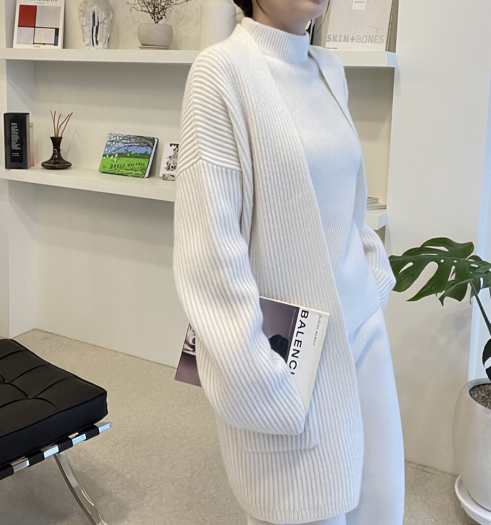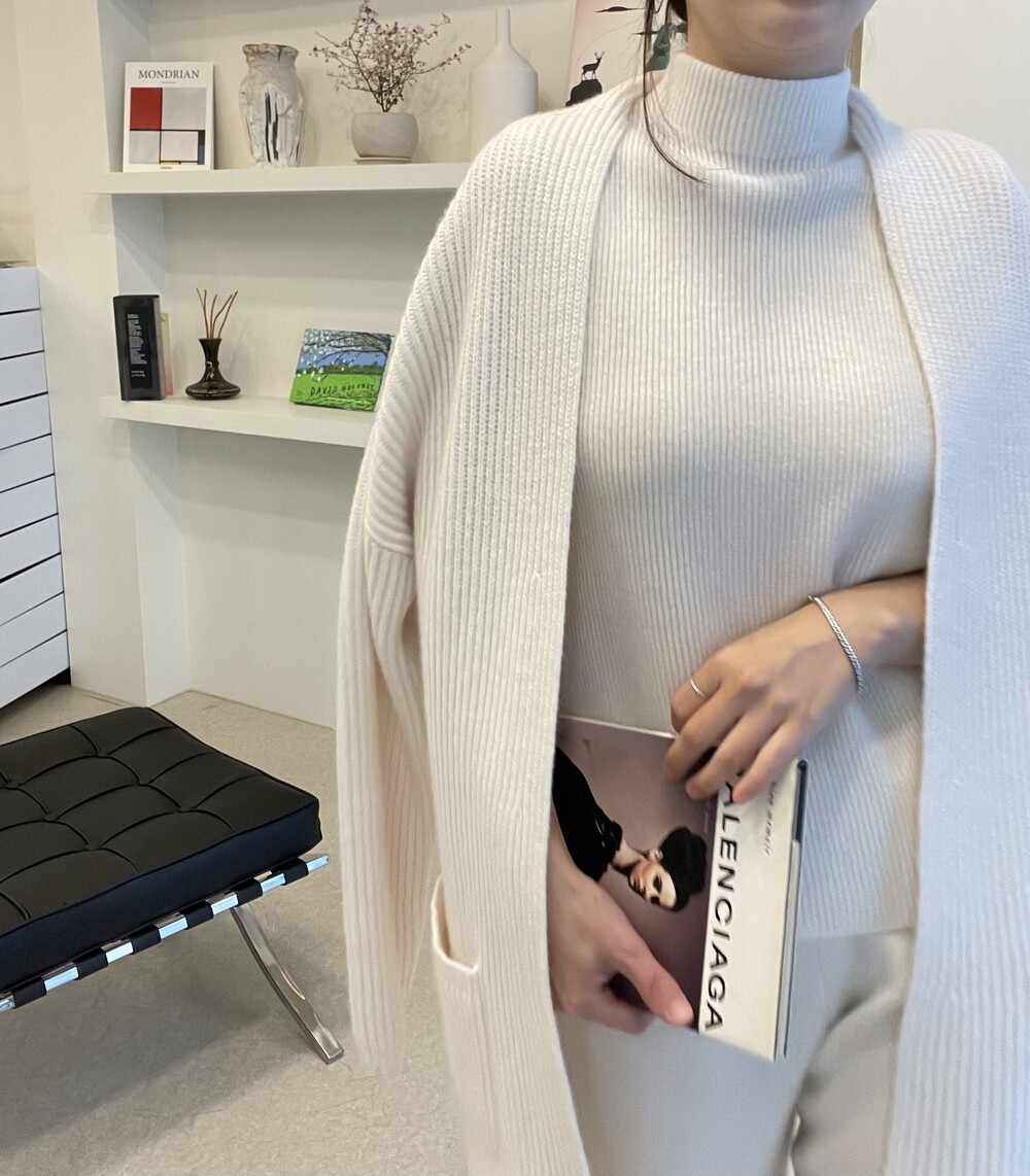 특히 가디건은 캐시미어의 중량이 꽤 많이 느껴지는 길이와 넓은 폭을 자랑합니다.