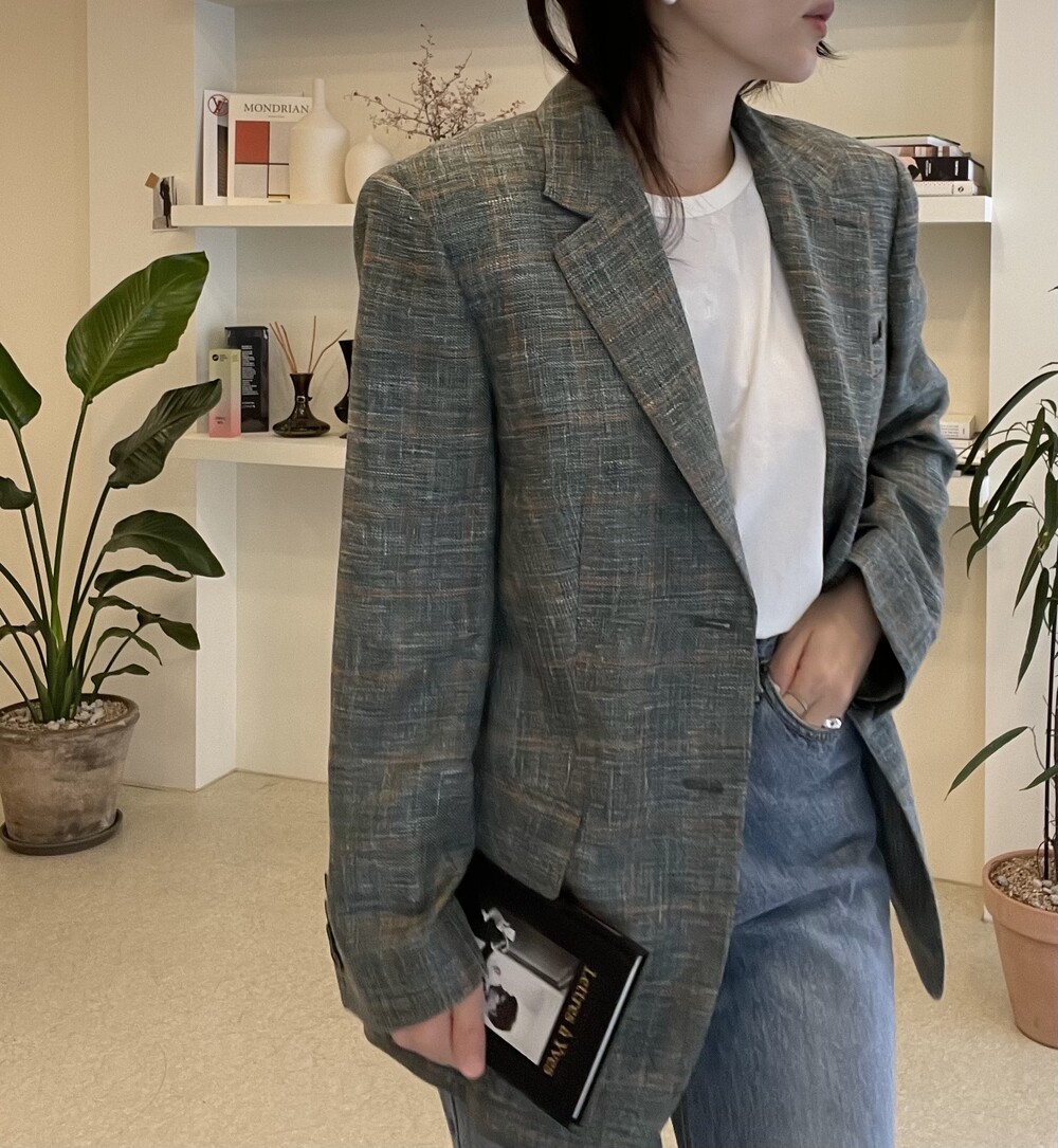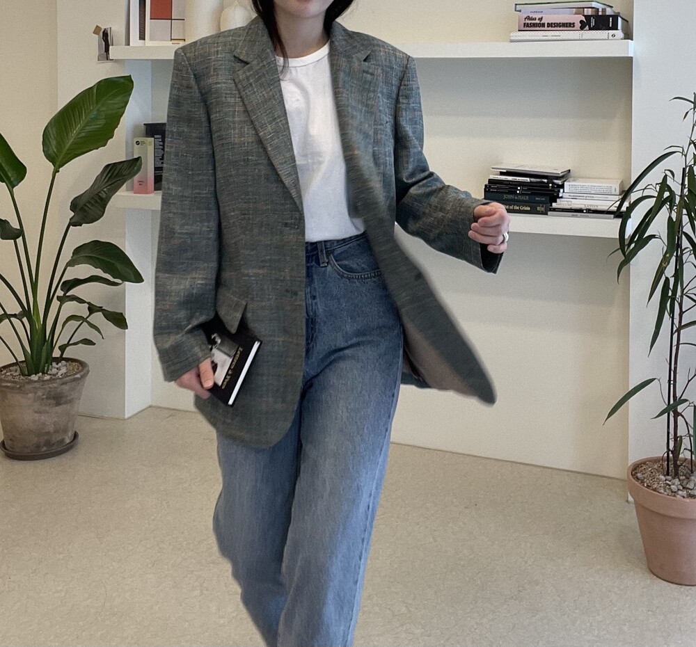 클래식 2버튼 오버핏자켓은 그레이스제이의 시그니처 패턴중에 하나인 어깨가 부담스럽지 않게 여유가 있으며, 자연스러운 허리쉐입과 힙을 살짝 덮는 기장감의 멋스러움이 특징적인 세련된 느낌의 세미 오버핏 입니다.