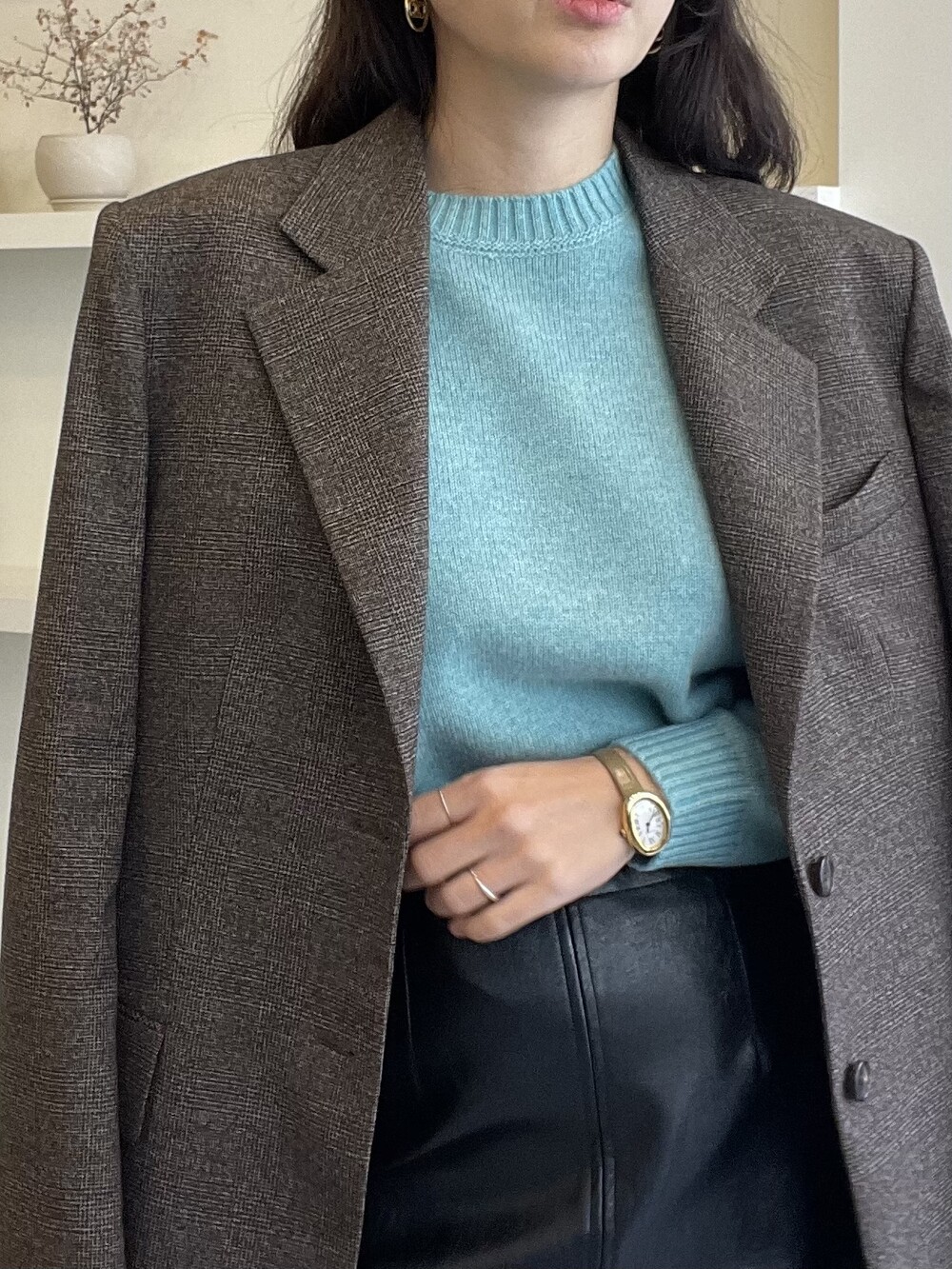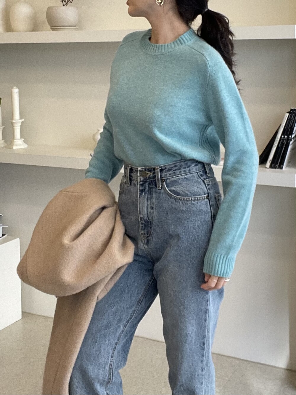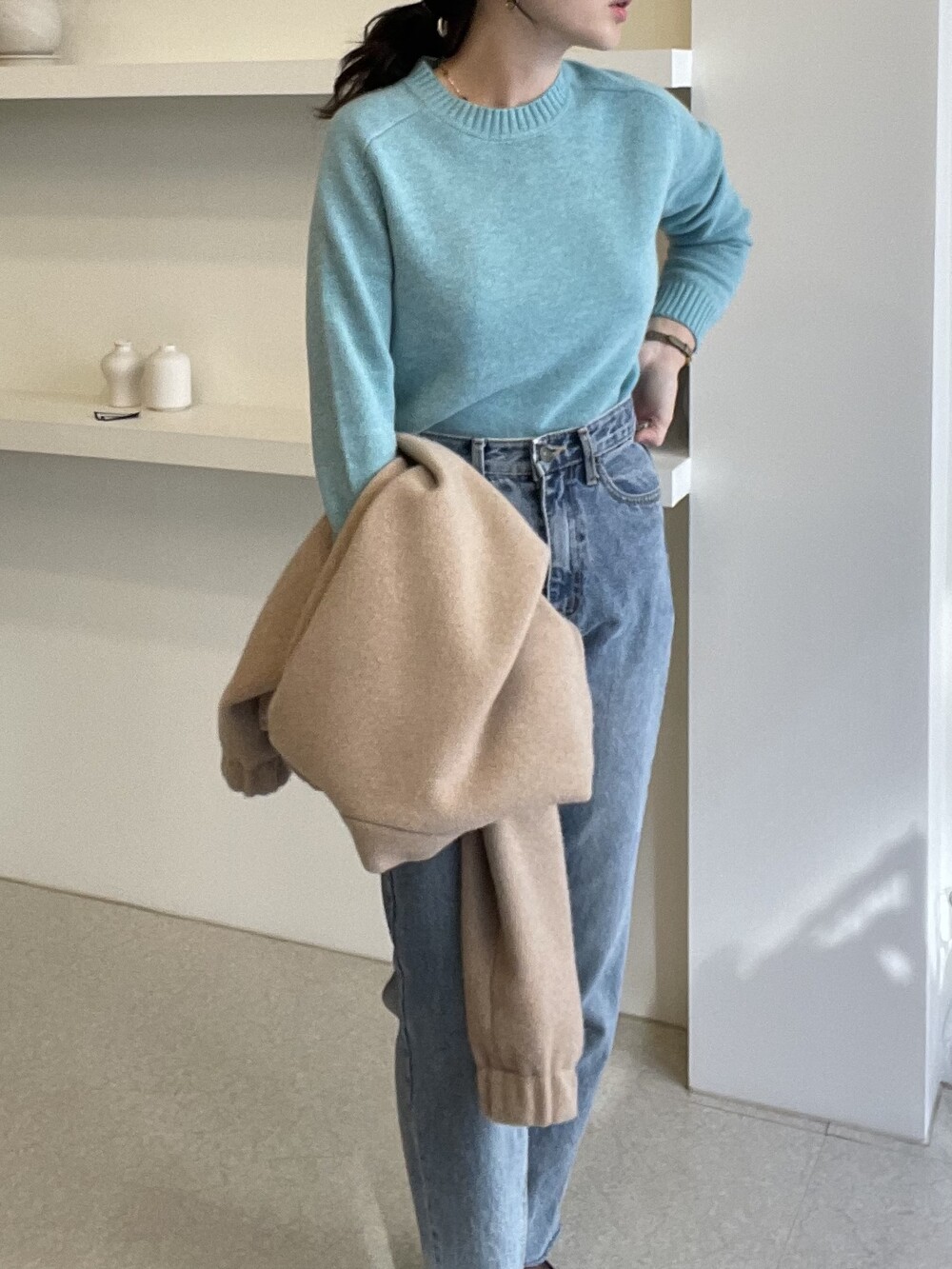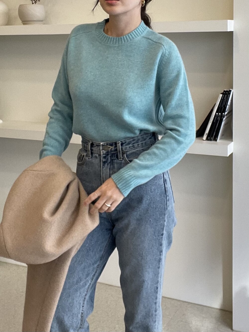 언제 어디서나 가장 클래식 하고 우아한 스타일로 다양하게 코디가 가능한 라운드넥 니트입니다.