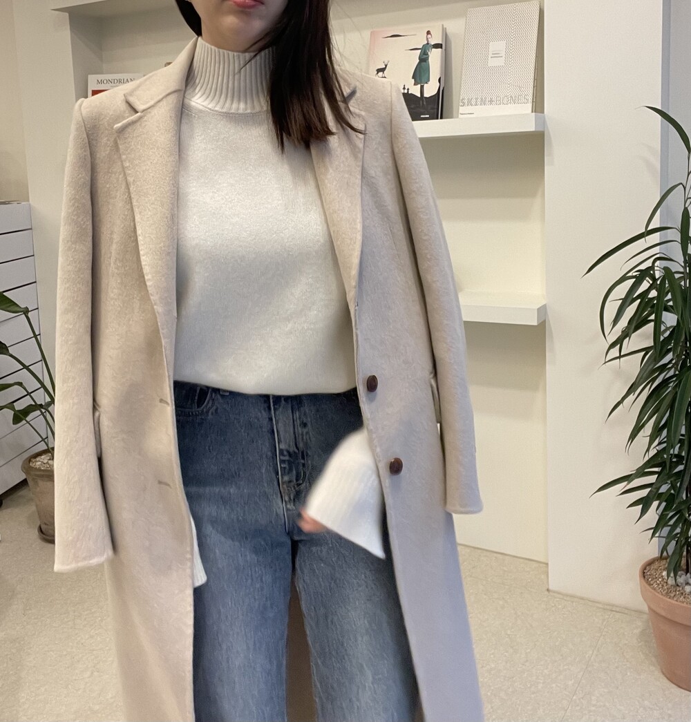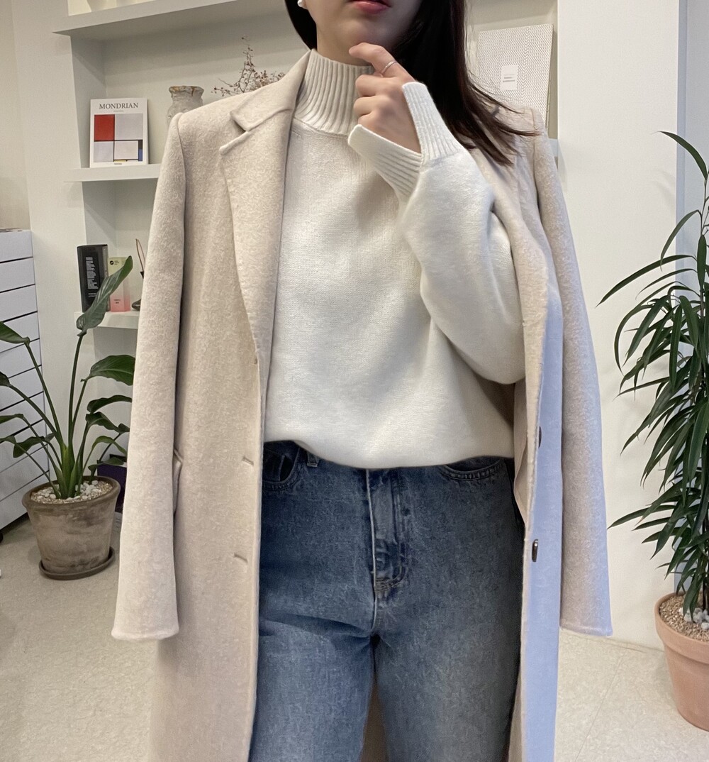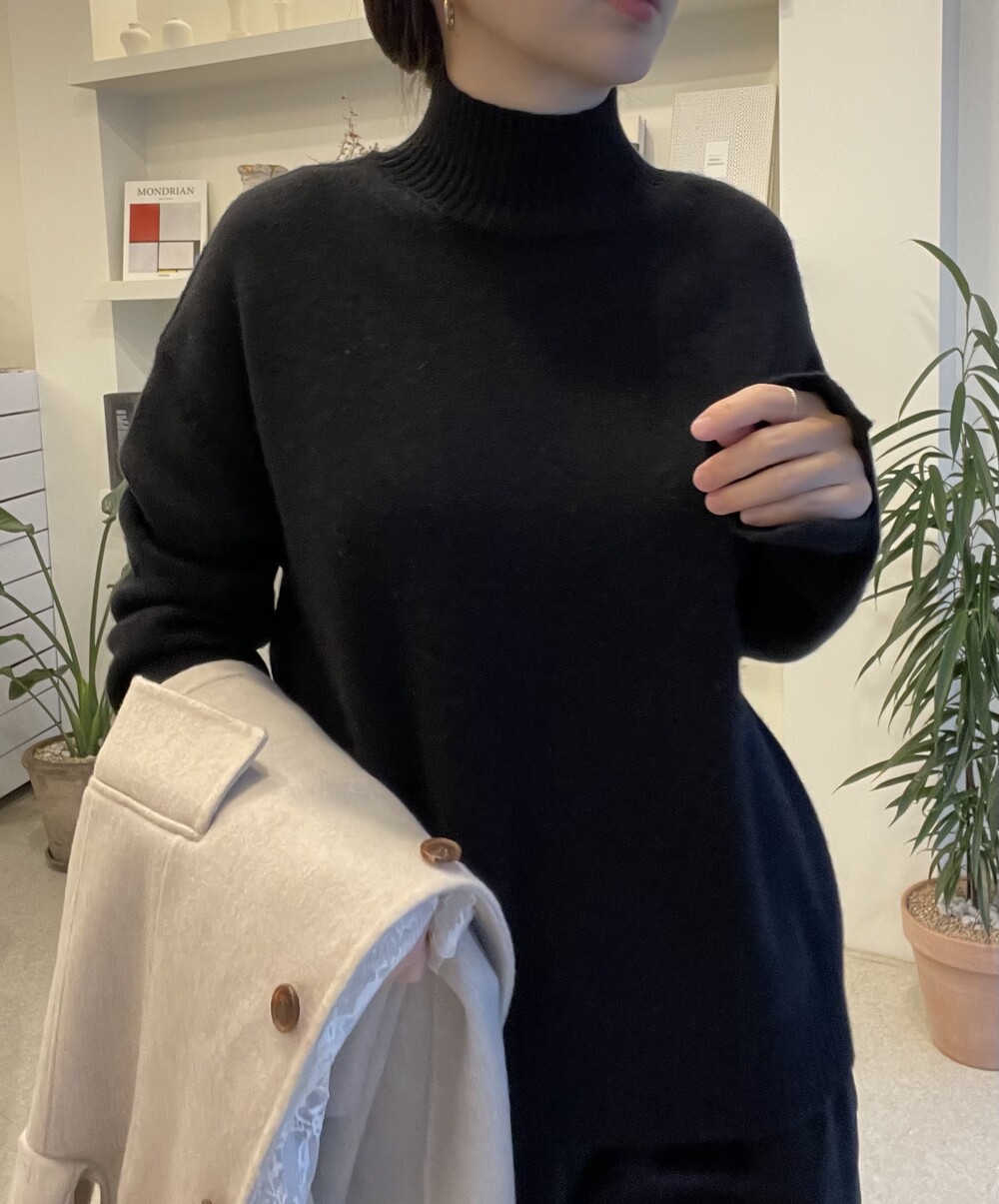 터틀넥은 답답하거나 목이 짧아 보인다는 이유로 꺼려 하셨던 분들께도 반가운 디자인으로 완성 되었습니다. 목을 조이지 않으며, 목 라인이 길어보이도록 비율설계에 초첨을 맞춰 만들어진 매력적인 니트입니다.