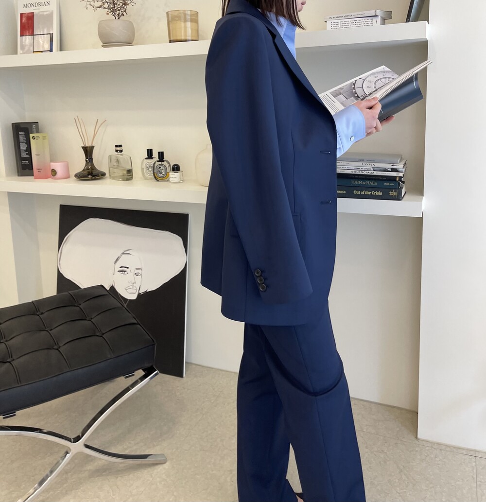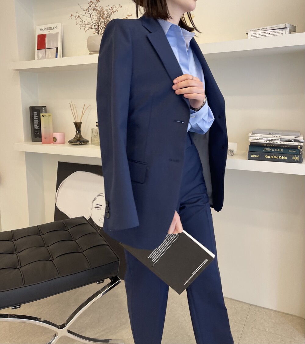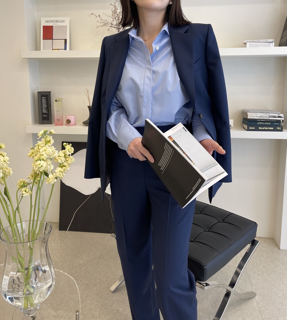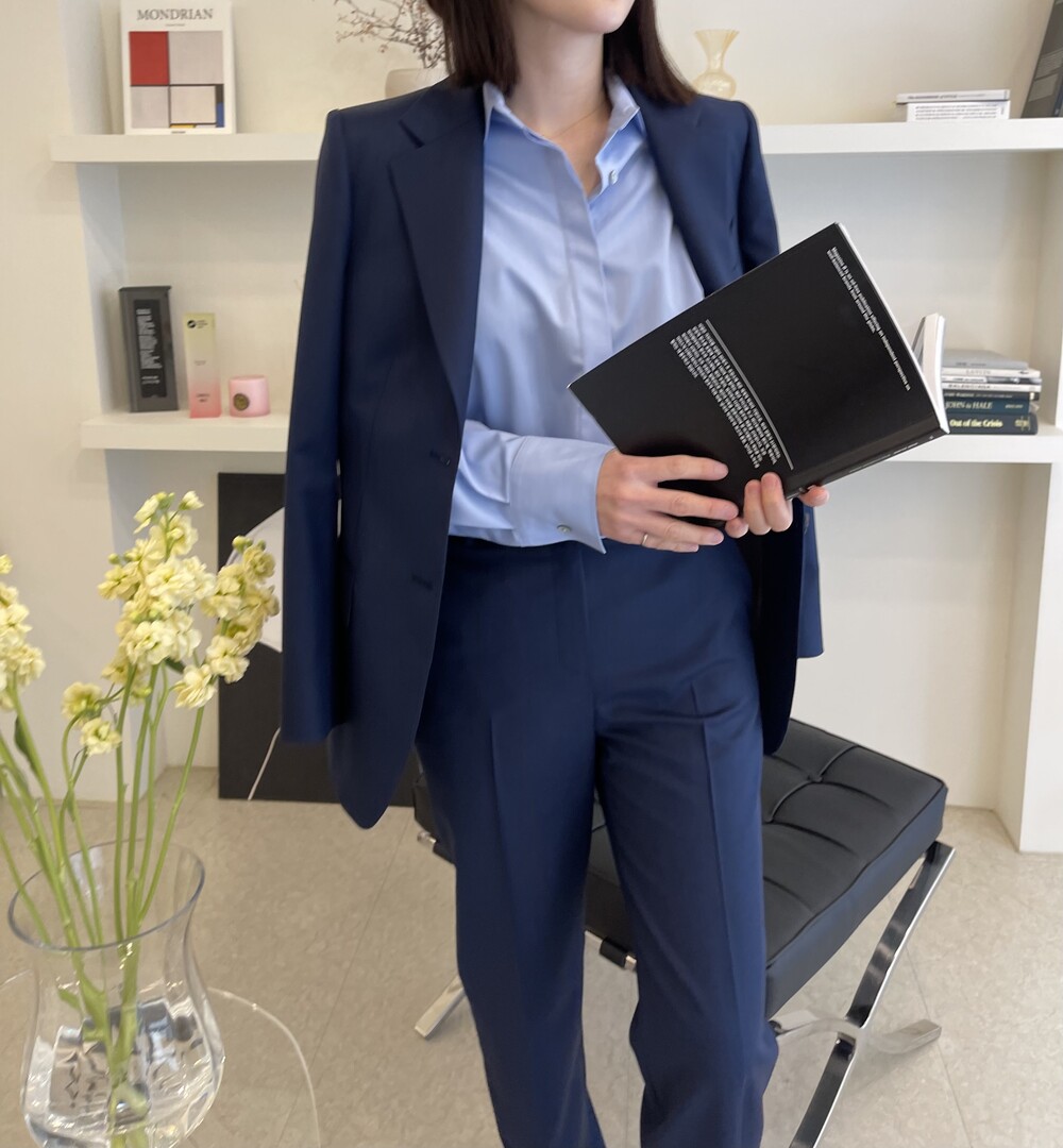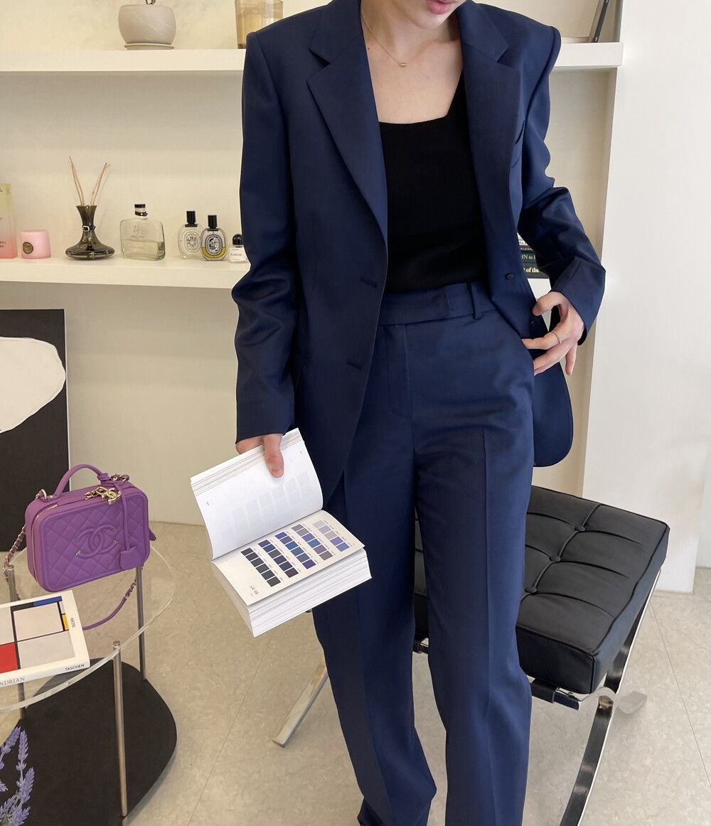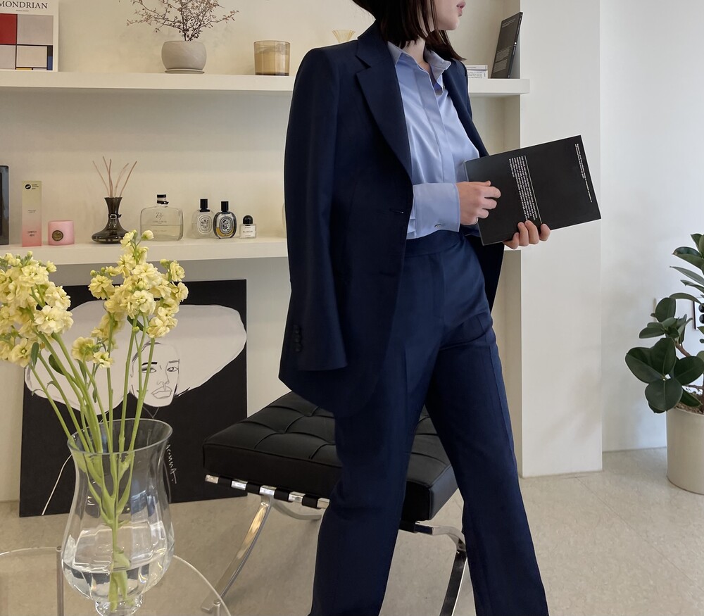 은은한 4H 의 조직감에서 오는 오묘한 블루톤이 고급스러운 테일러링에 한층 더 우아한 느낌을 줍니다.