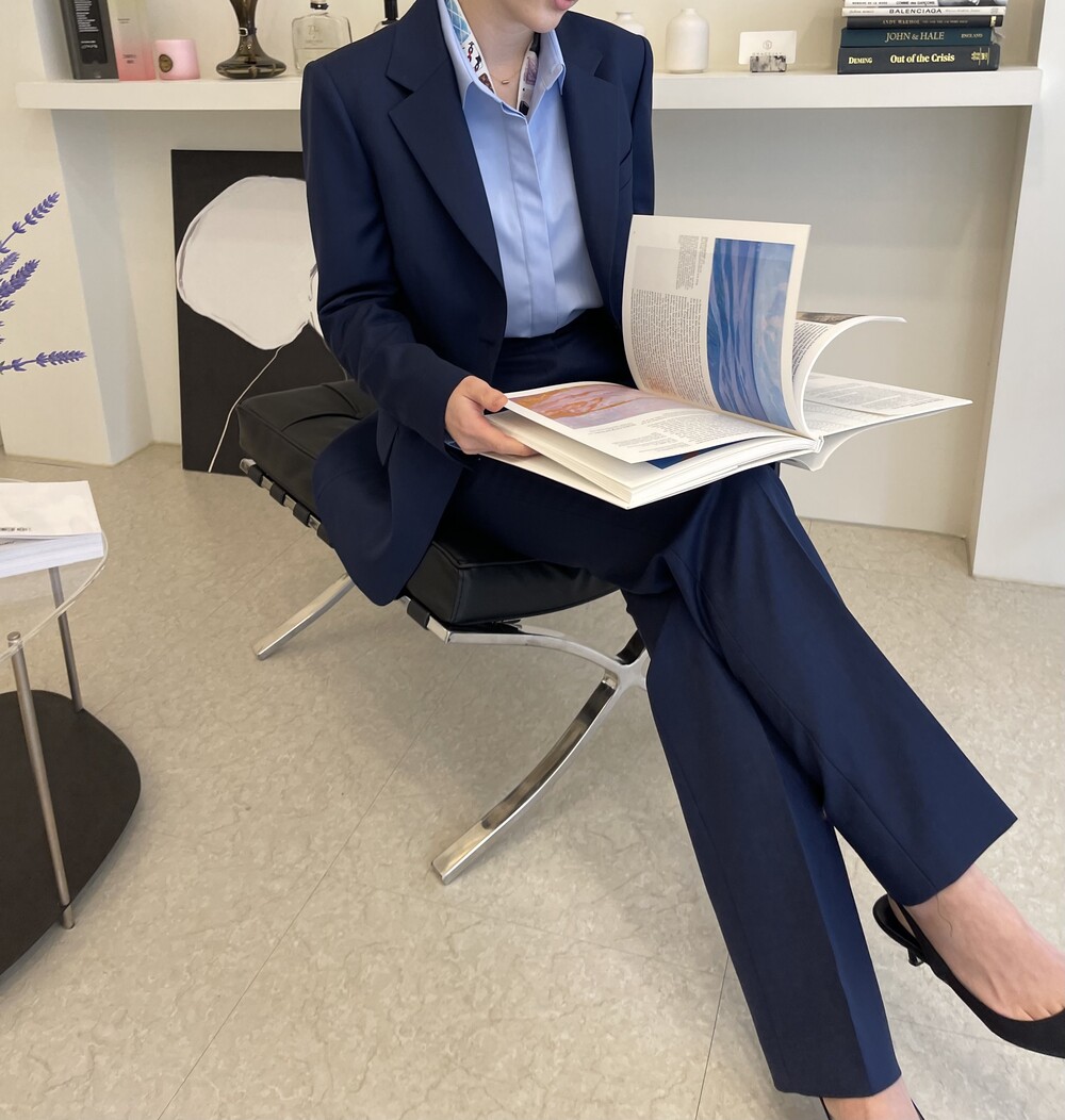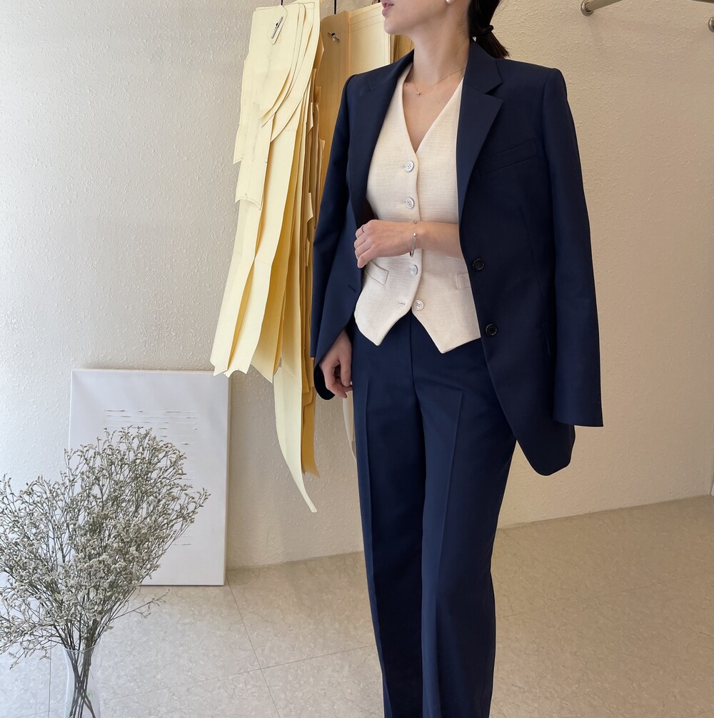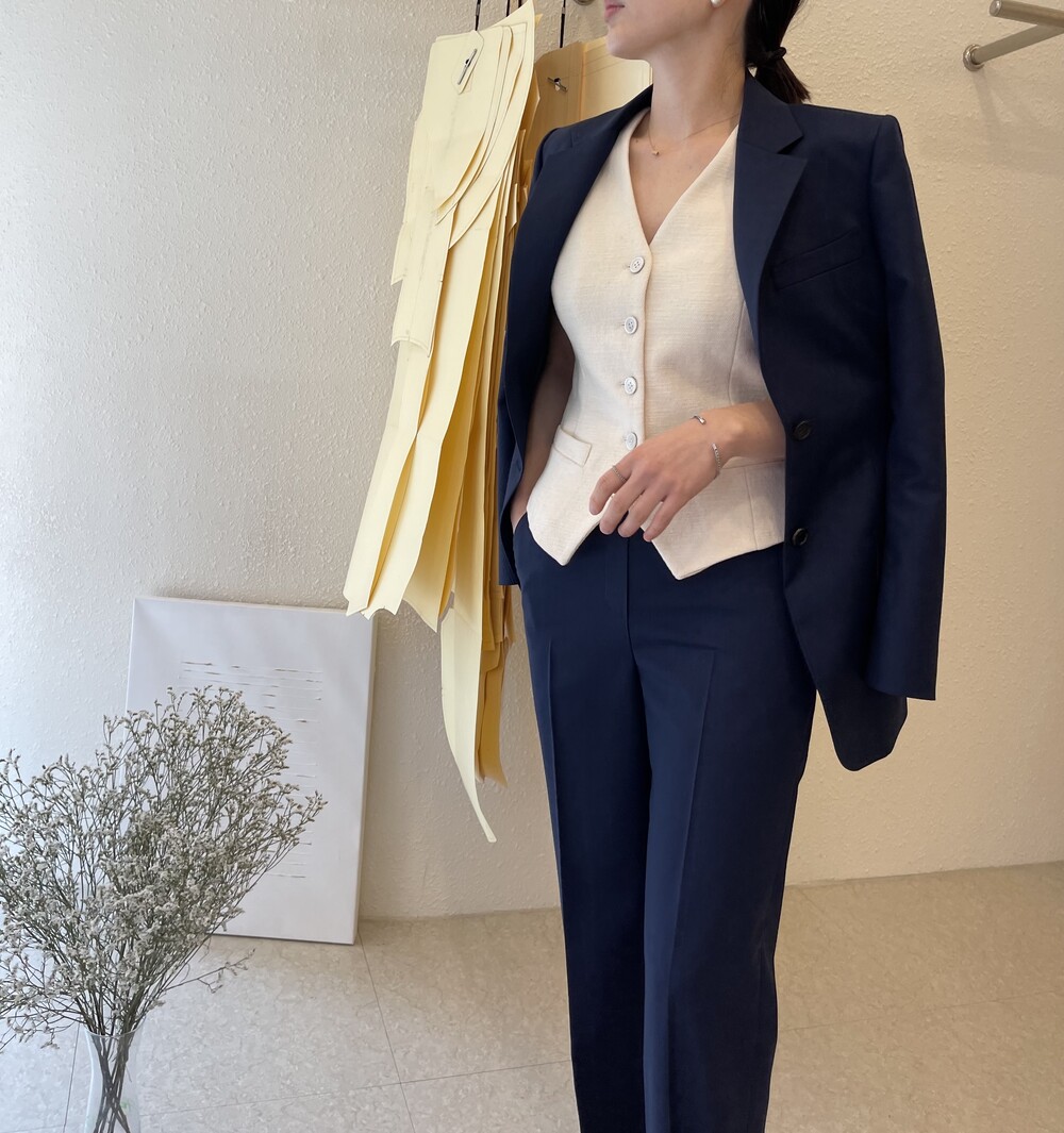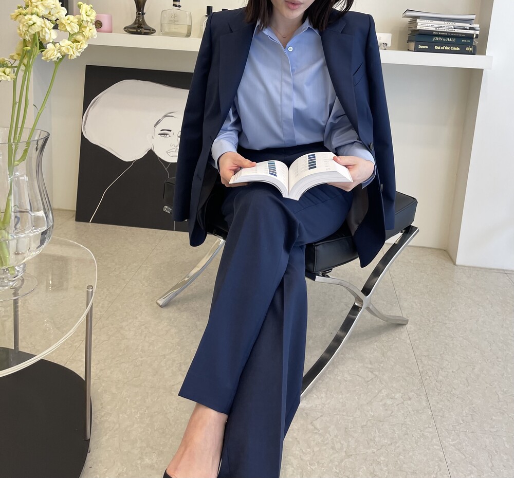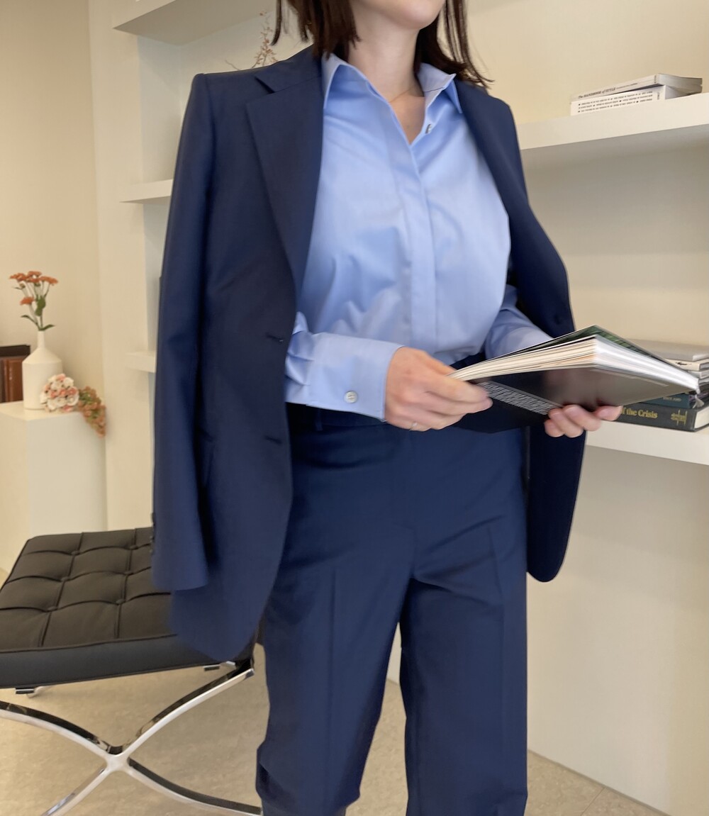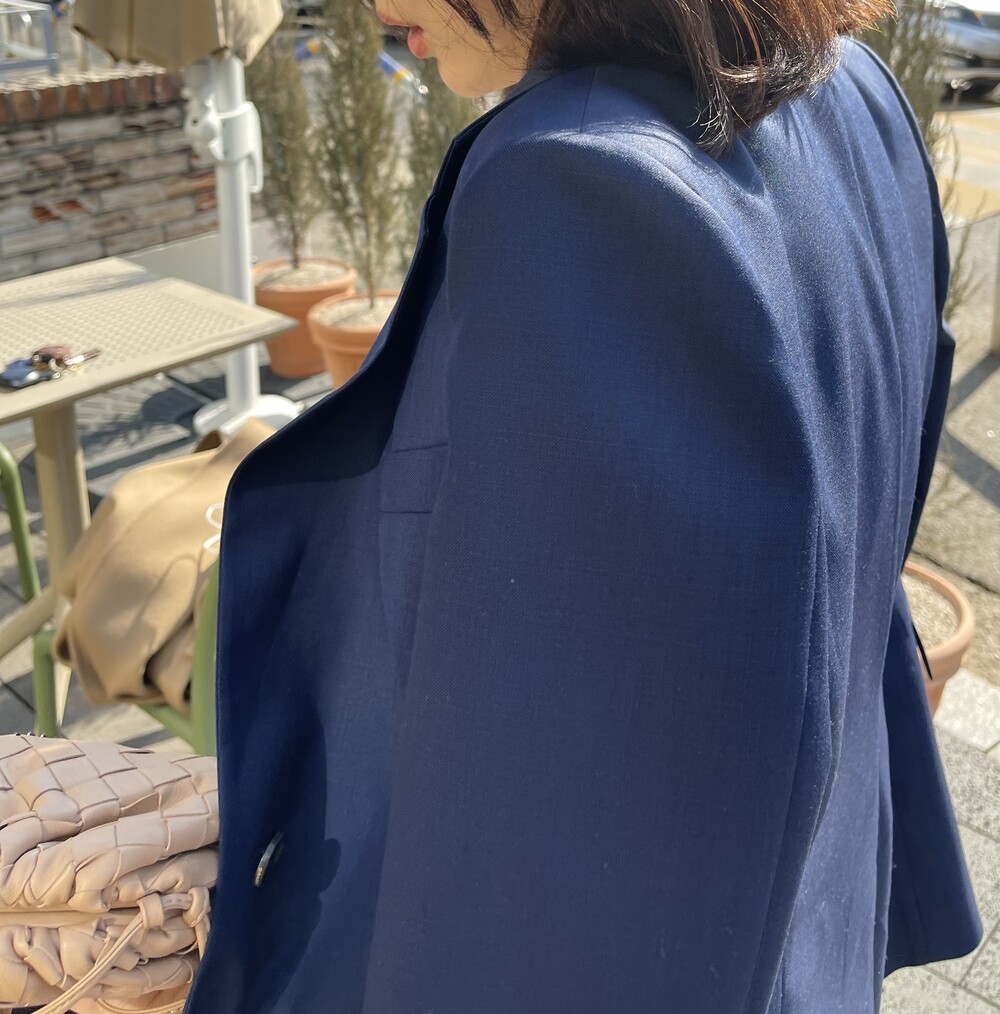 은은한 4H 의 조직감에서 오는 오묘한 블루톤이 고급스러운 테일러링에 한층 더 우아한 느낌을 줍니다.