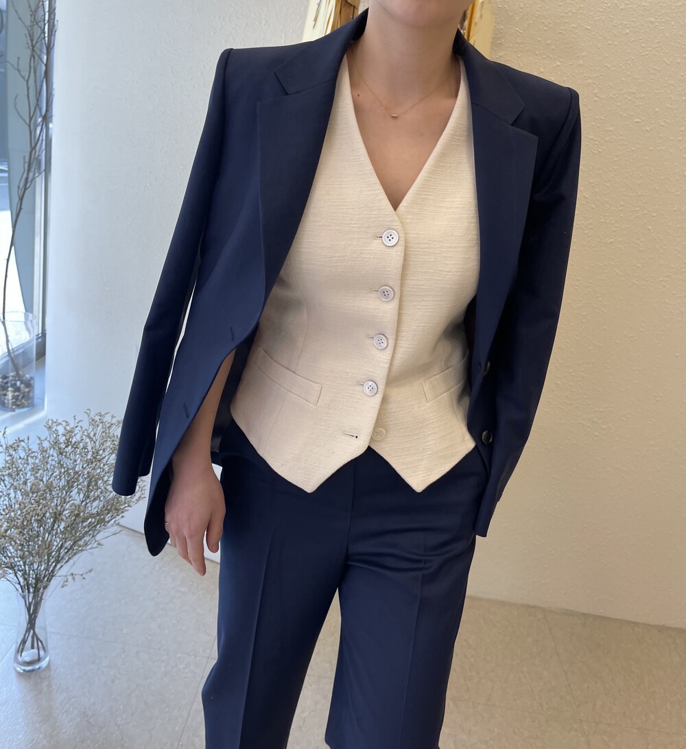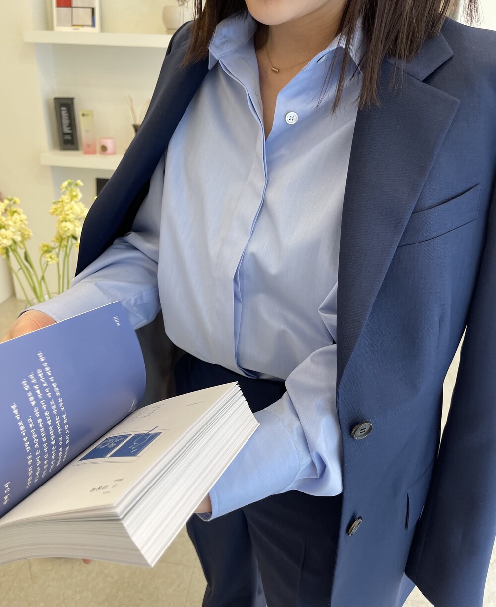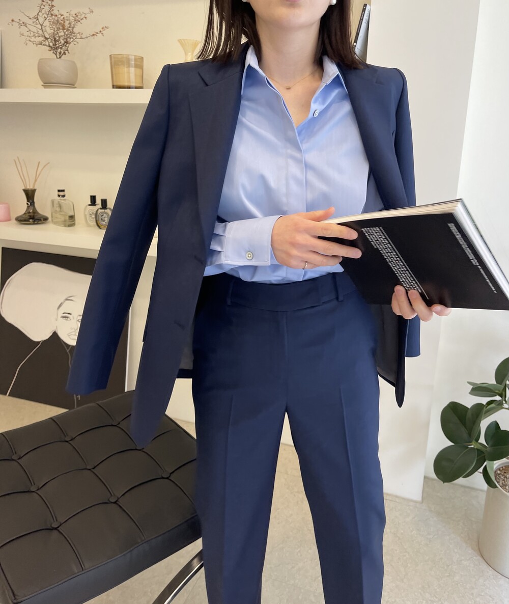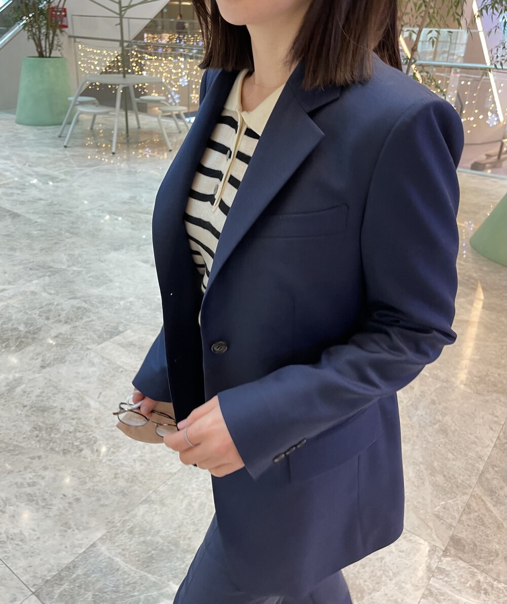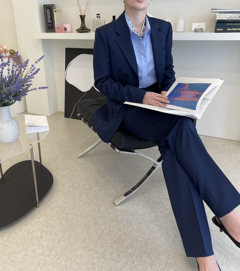 은은한 4H 의 조직감에서 오는 오묘한 블루톤이 고급스러운 테일러링에 한층 더 우아한 느낌을 줍니다.