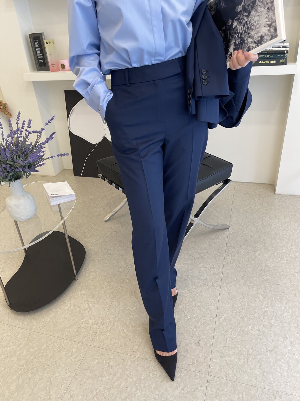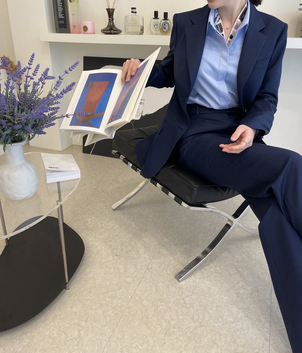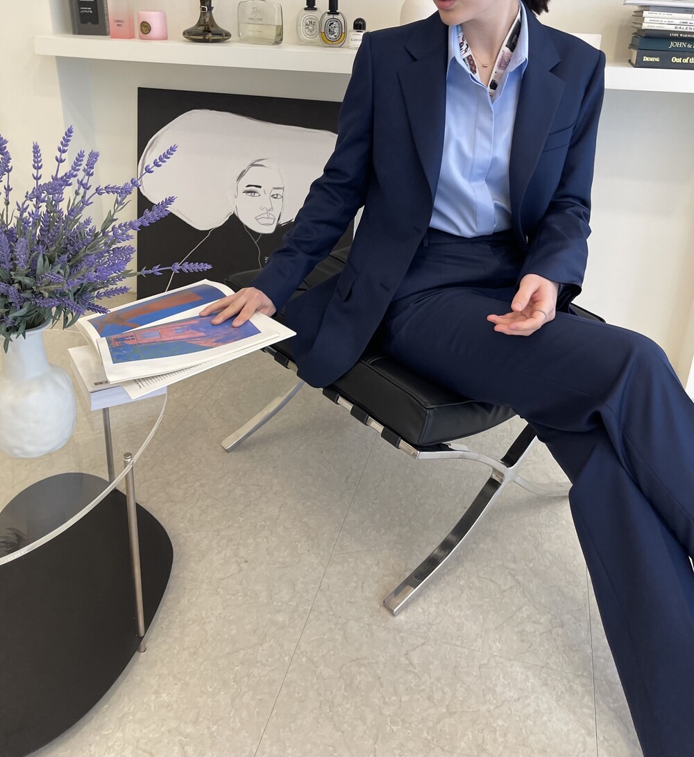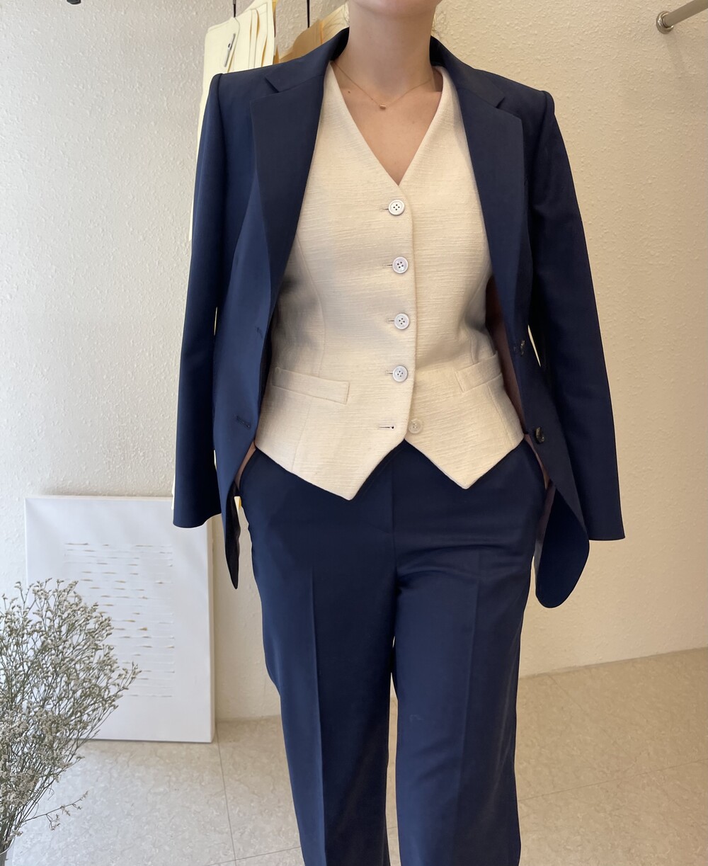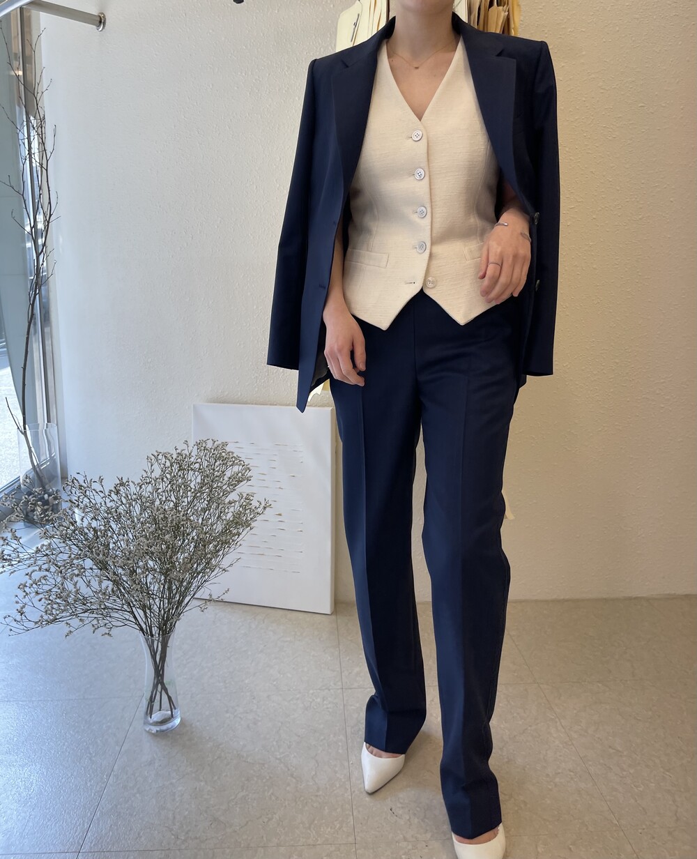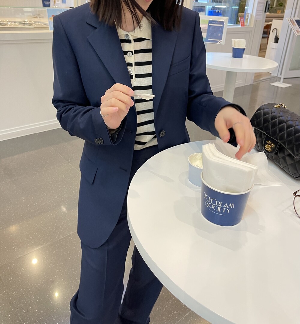 은은한 4H 의 조직감에서 오는 오묘한 블루톤이 고급스러운 테일러링에 한층 더 우아한 느낌을 줍니다.