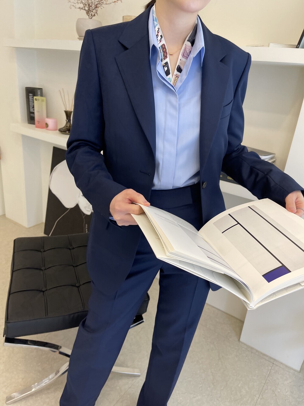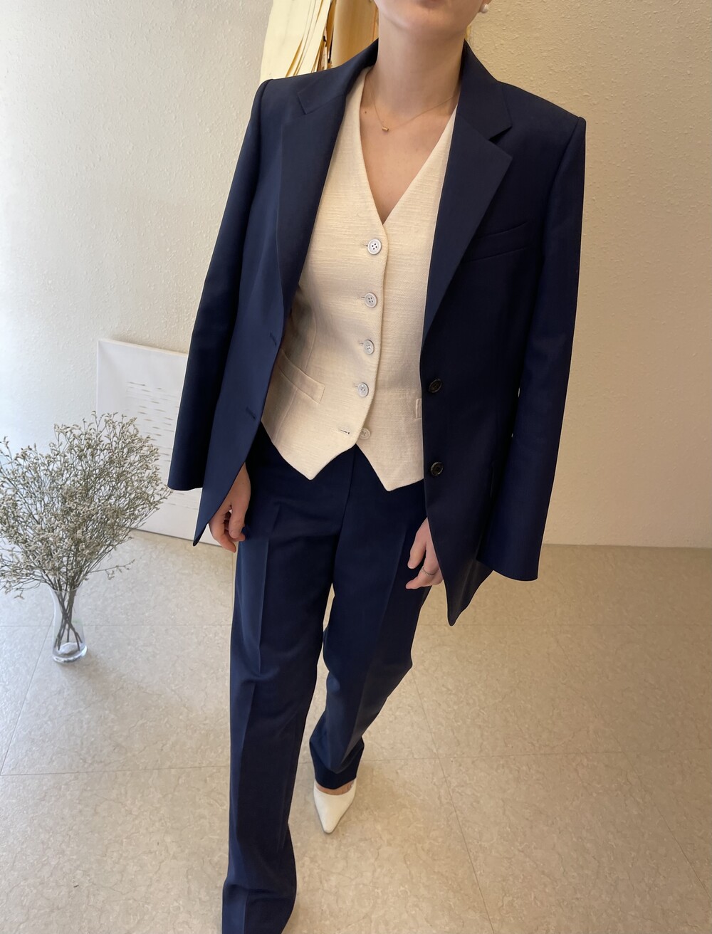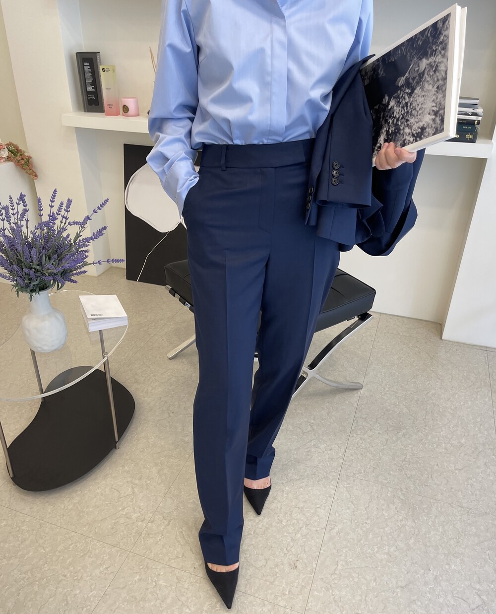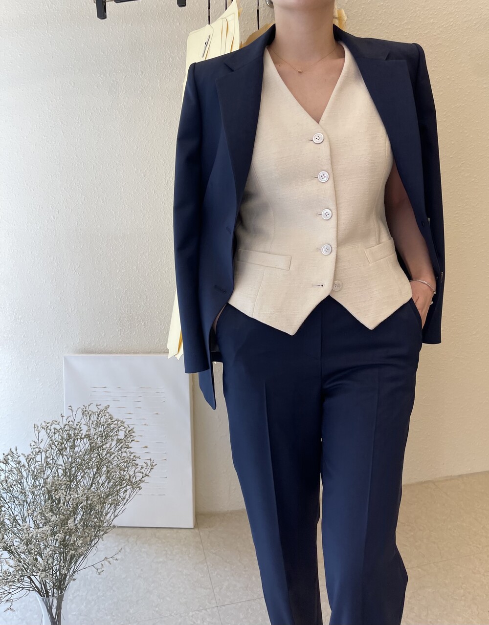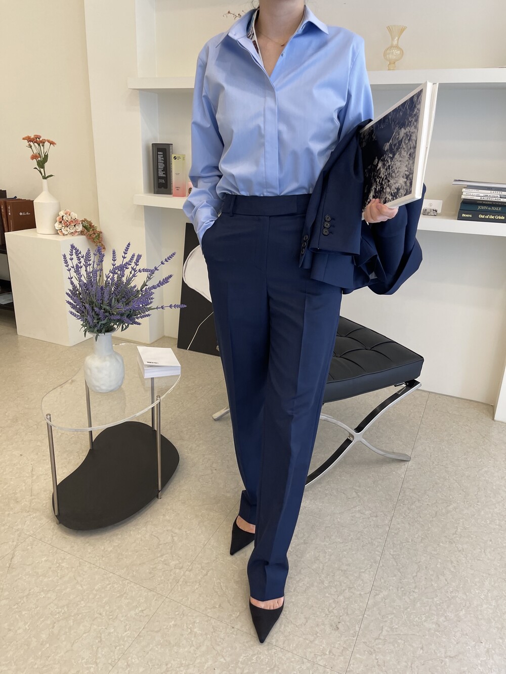 은은한 4H 의 조직감에서 오는 오묘한 블루톤이 고급스러운 테일러링에 한층 더 우아한 느낌을 줍니다.