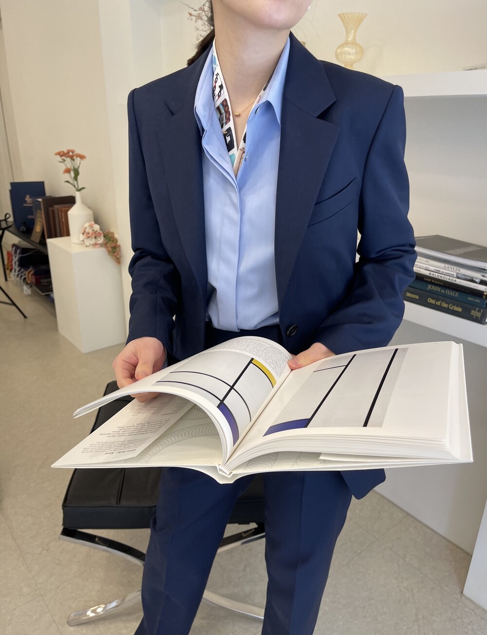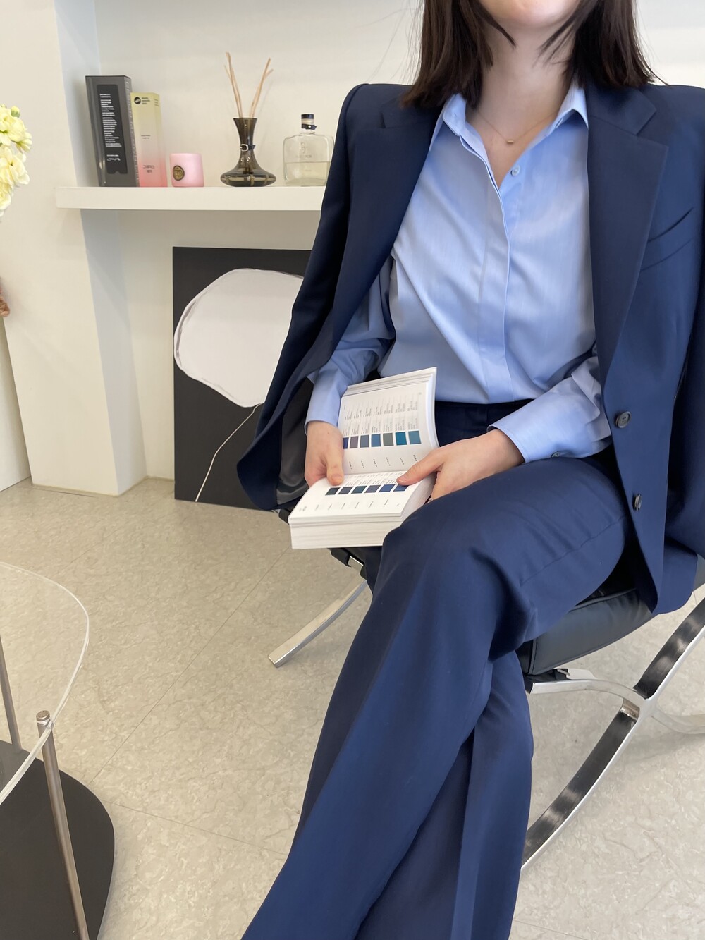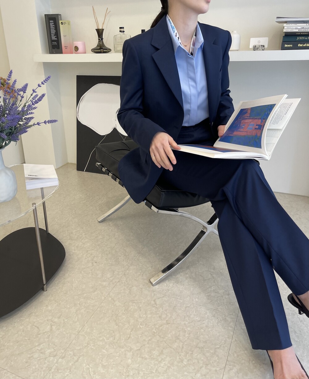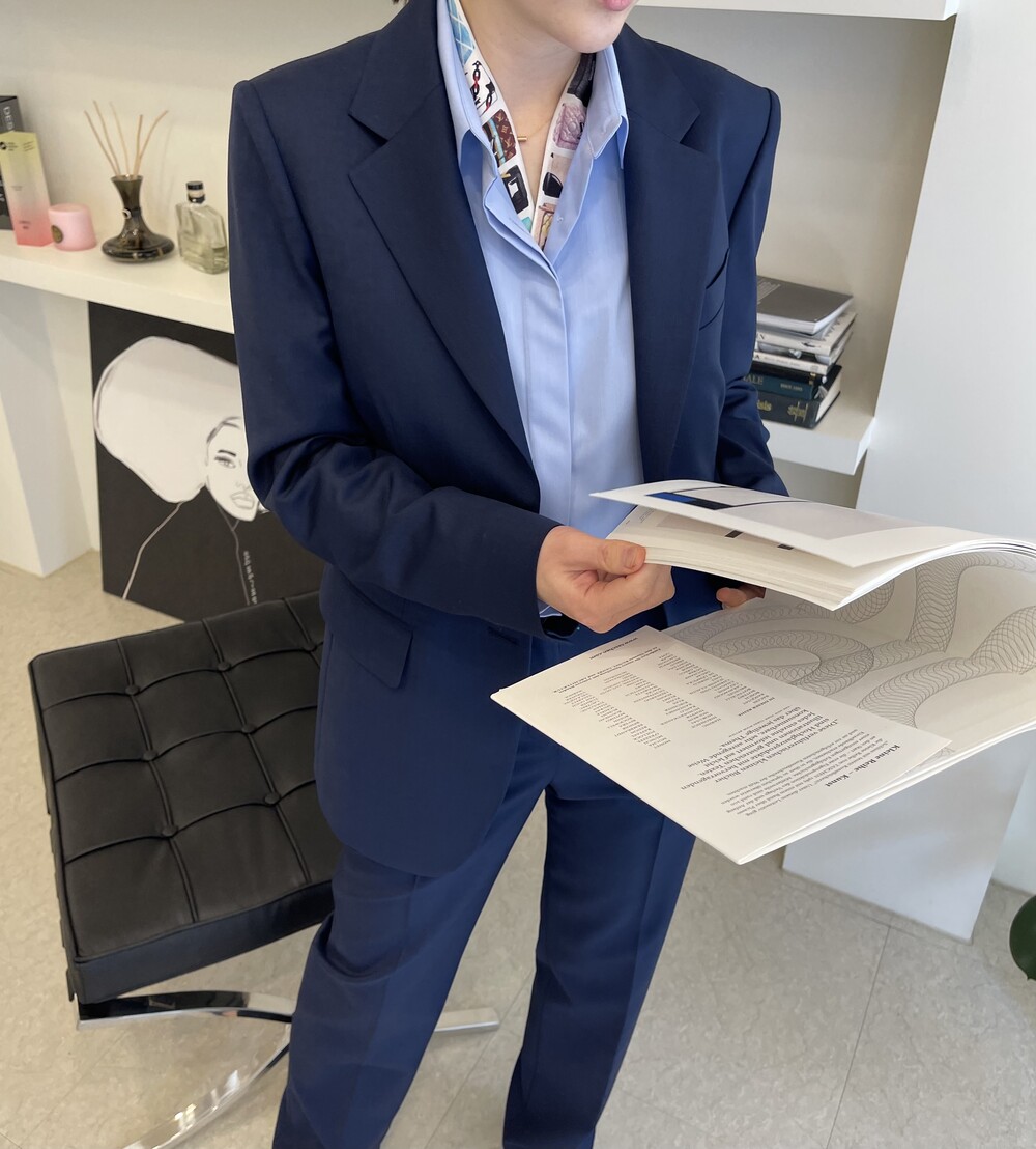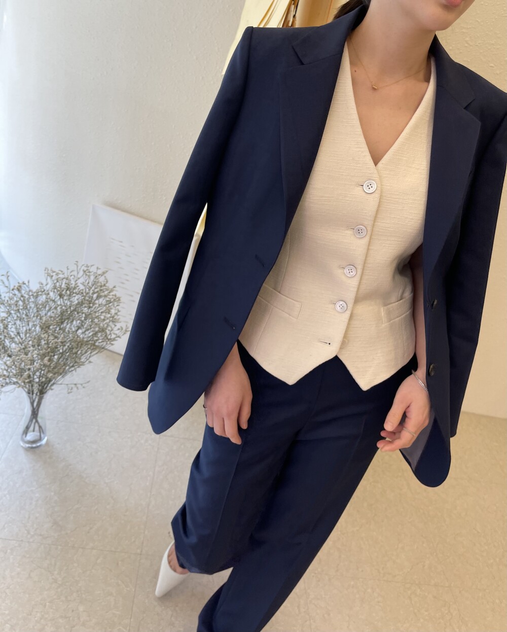 은은한 4H 의 조직감에서 오는 오묘한 블루톤이 고급스러운 테일러링에 한층 더 우아한 느낌을 줍니다.