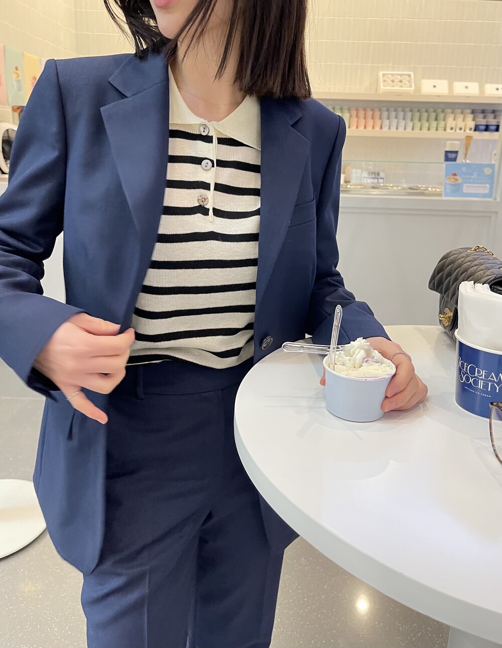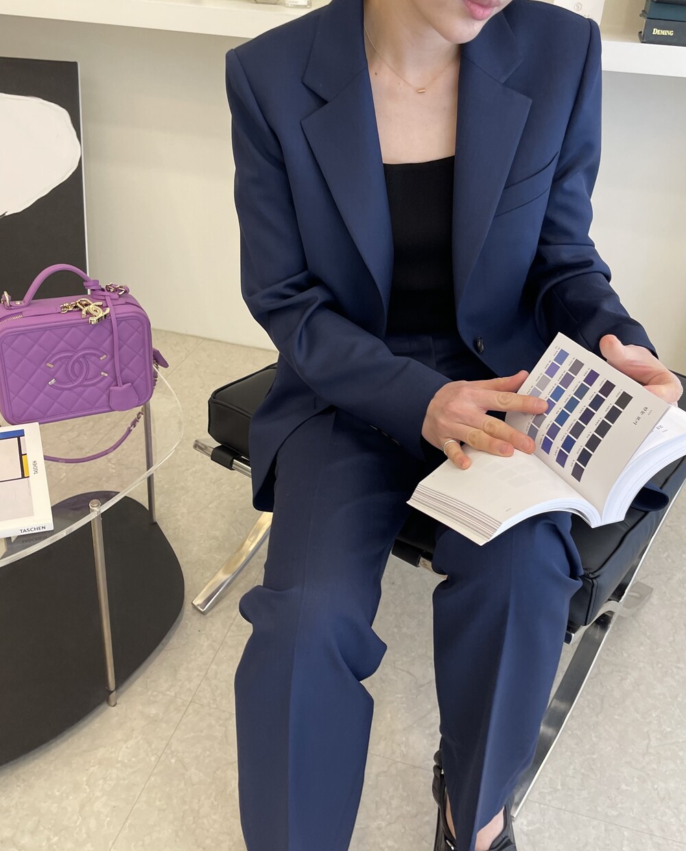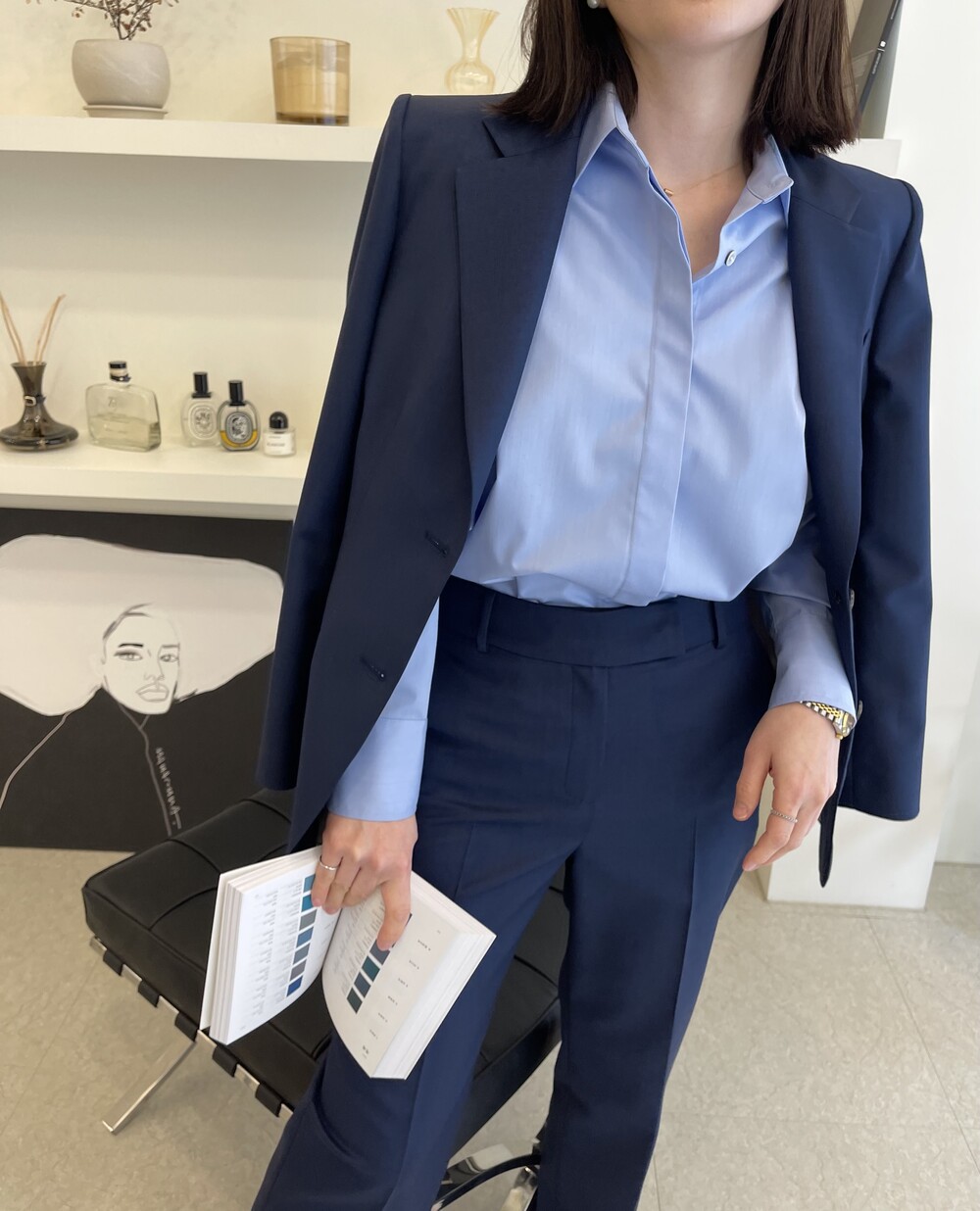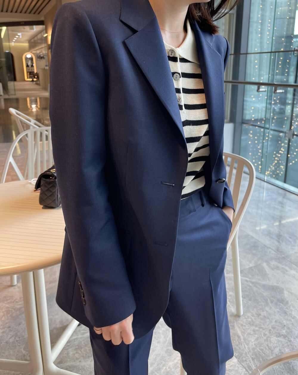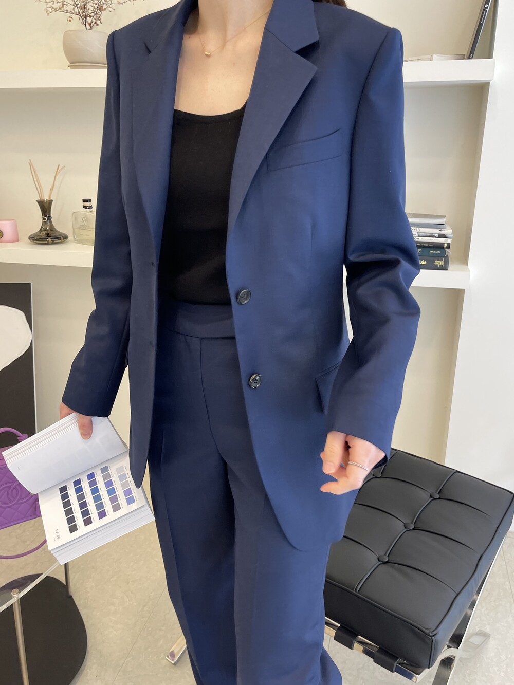 이번에 보여드리는 2번째의 미드나잇 블루 수트는 좀더 컴팩트하고 깨끗한 질감의 소재입니다 .