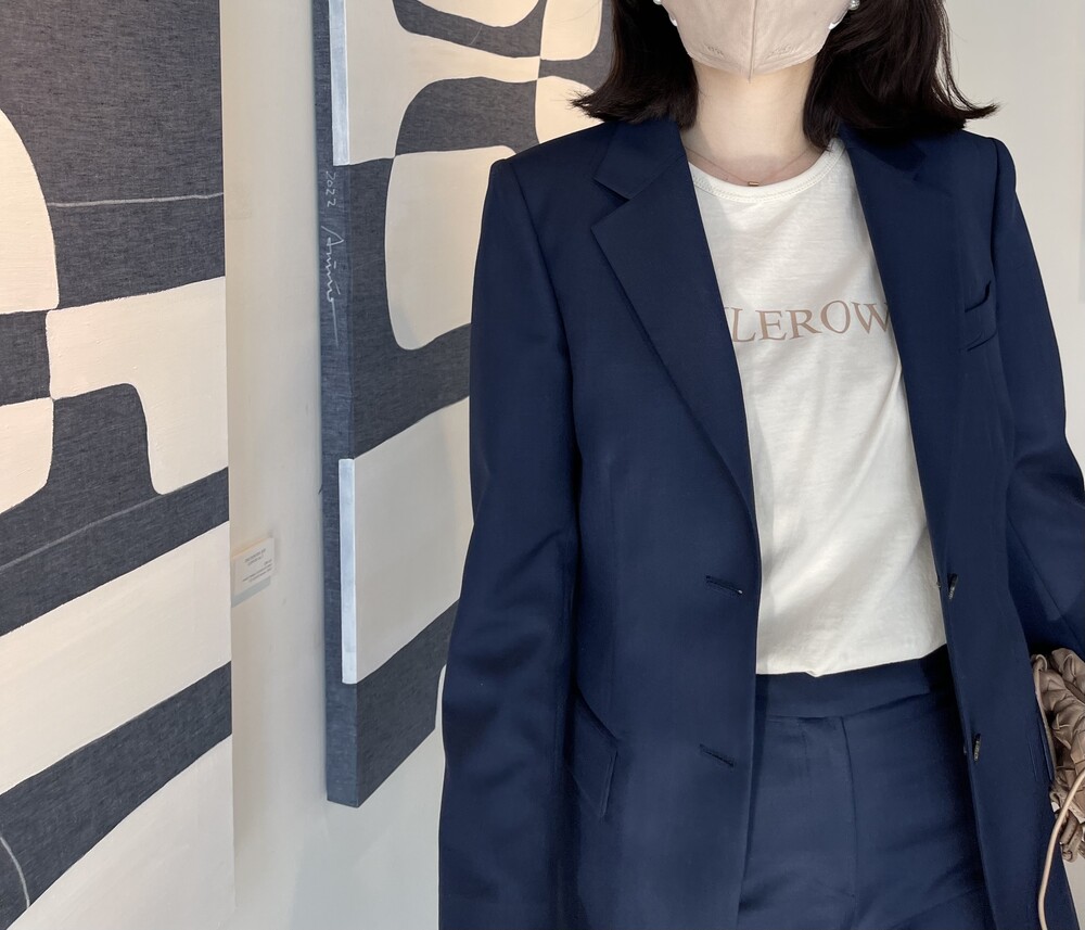 어깨선은 오버핏 느낌까지는 아니지만 살짝 드롭되어 그레이스제이만의 리치하고 여유있는 세련미를 주고,