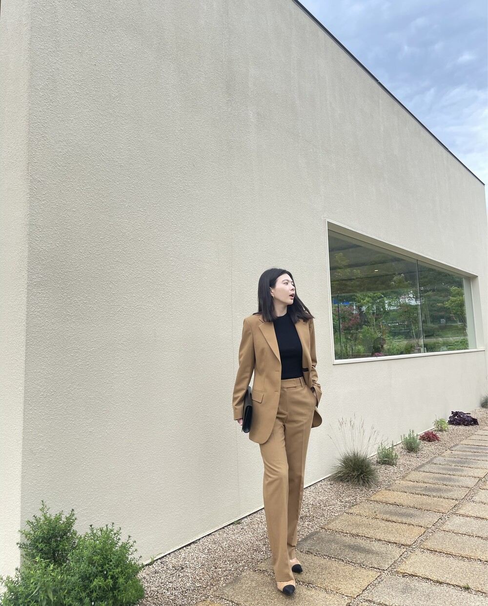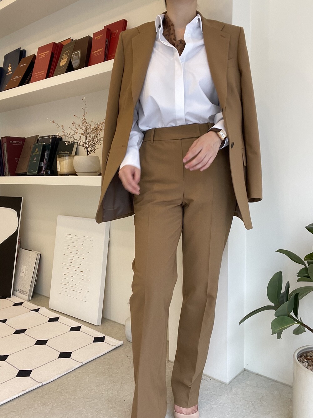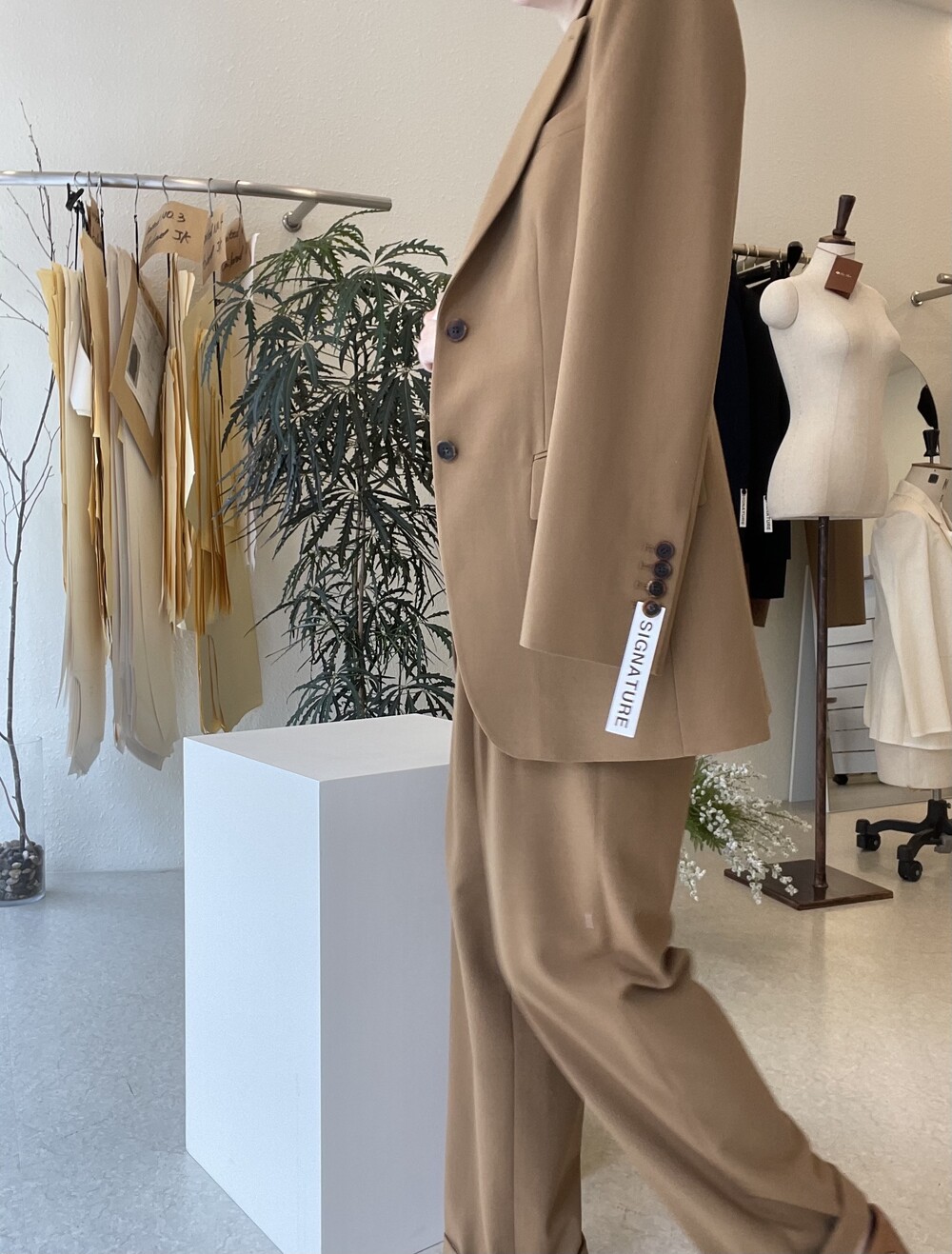 이번에 보여드리는 카멜수트는 매트조직의 소재입니다.