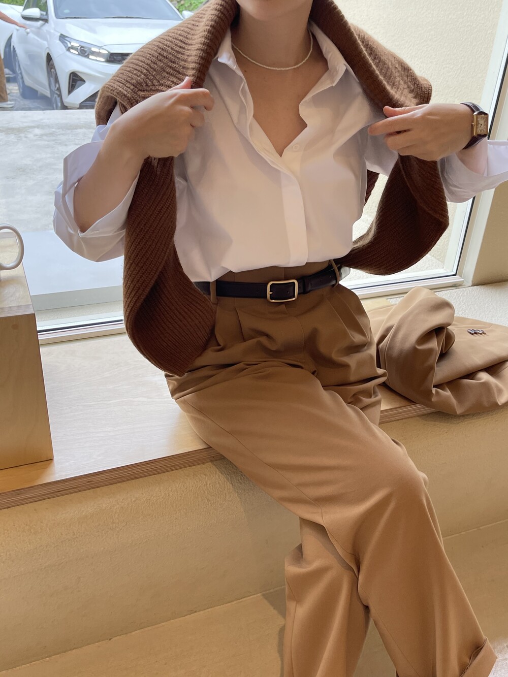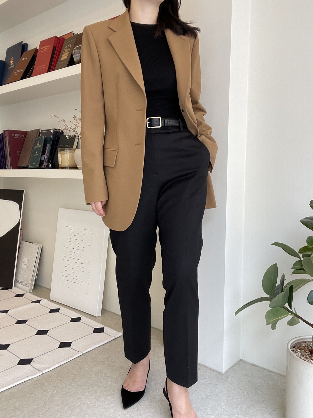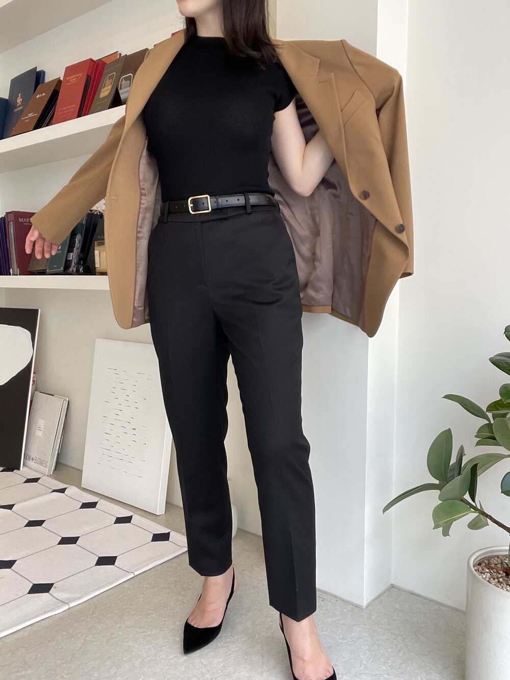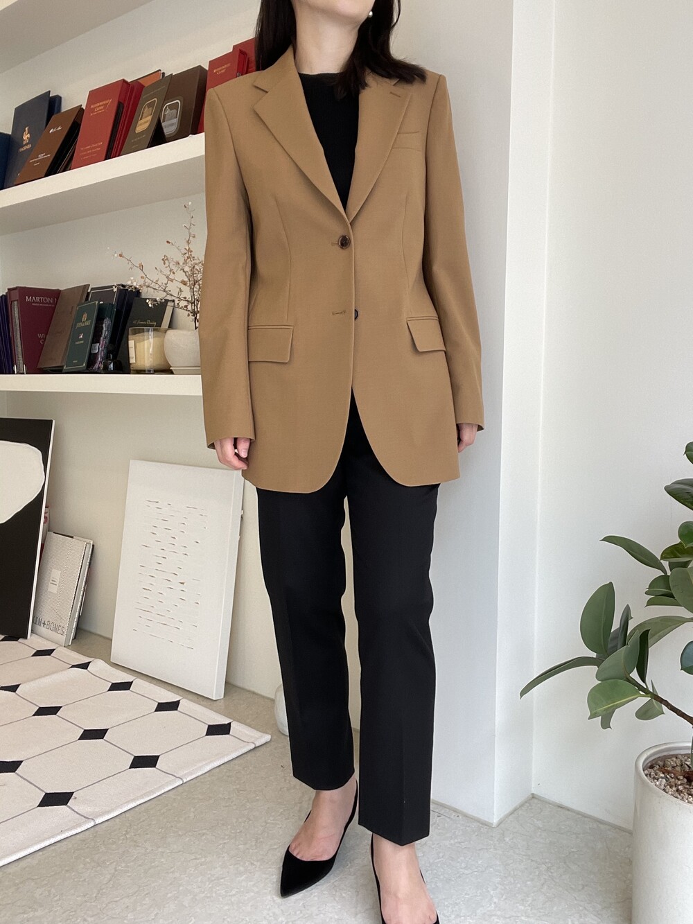 어깨선은 오버핏 느낌까지는 아니지만 살짝 드롭되어 그레이스제이만의 리치하고 여유있는 세련미를 주고,