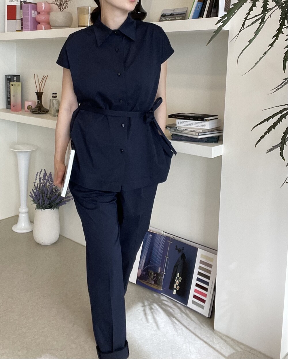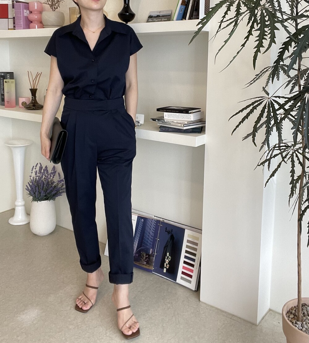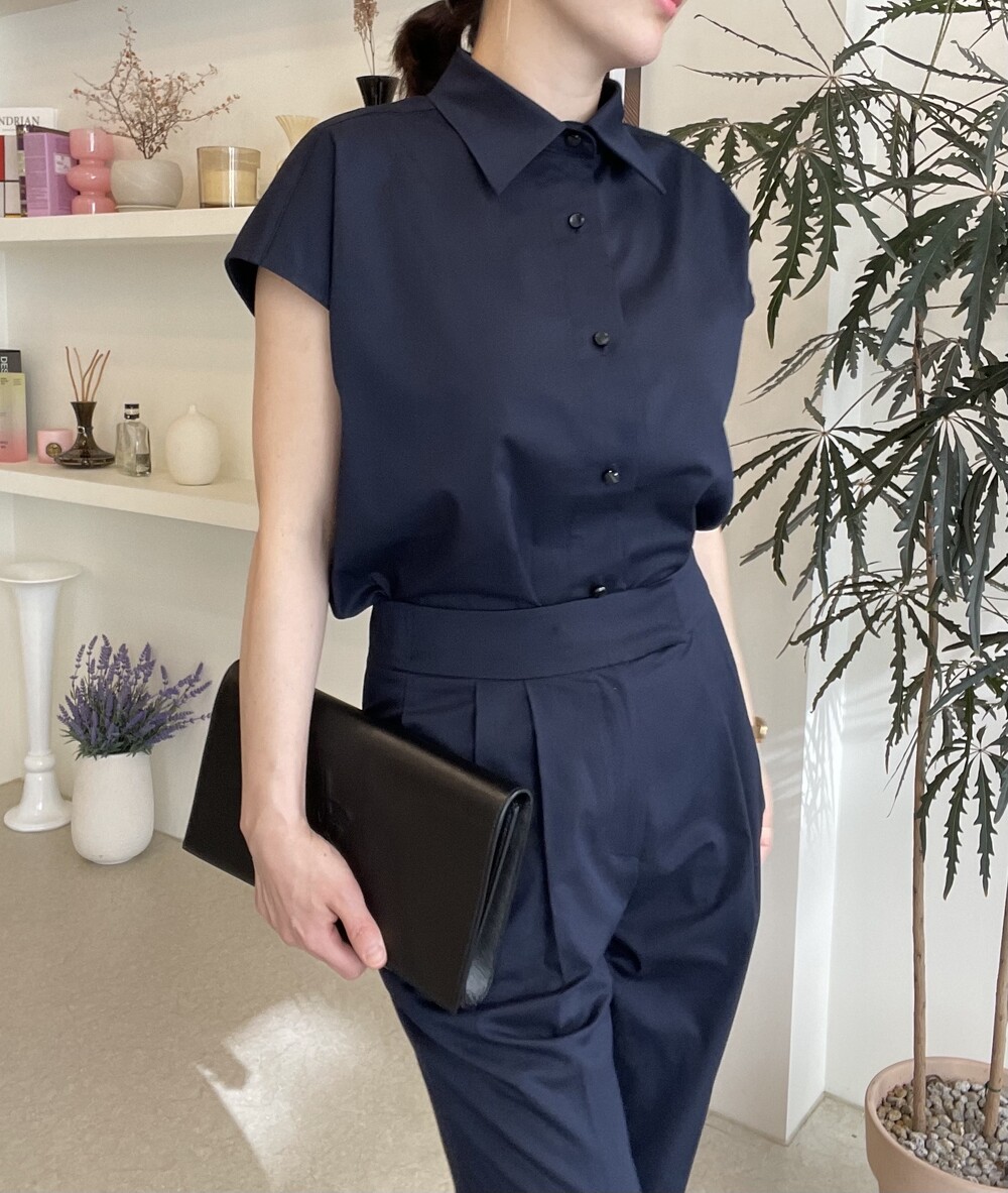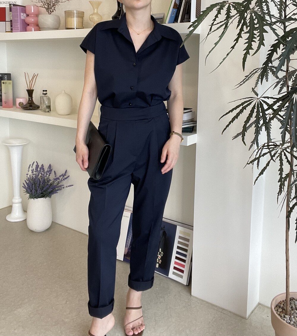 하나의 옷으로 캐쥬얼하게 그리고 무더운 여름에도 단정한 셋업룩이 필요하실때마다 여러가지 연출로 귀하게 잘 입어지실거에요. 컬러는 오션네이비 컬러로 많이 파랗지 않으며, 얼굴톤을 화사하게 잡아주는 톤 다운된 안정감 있는 네이비 컬러로 진행됩니다.