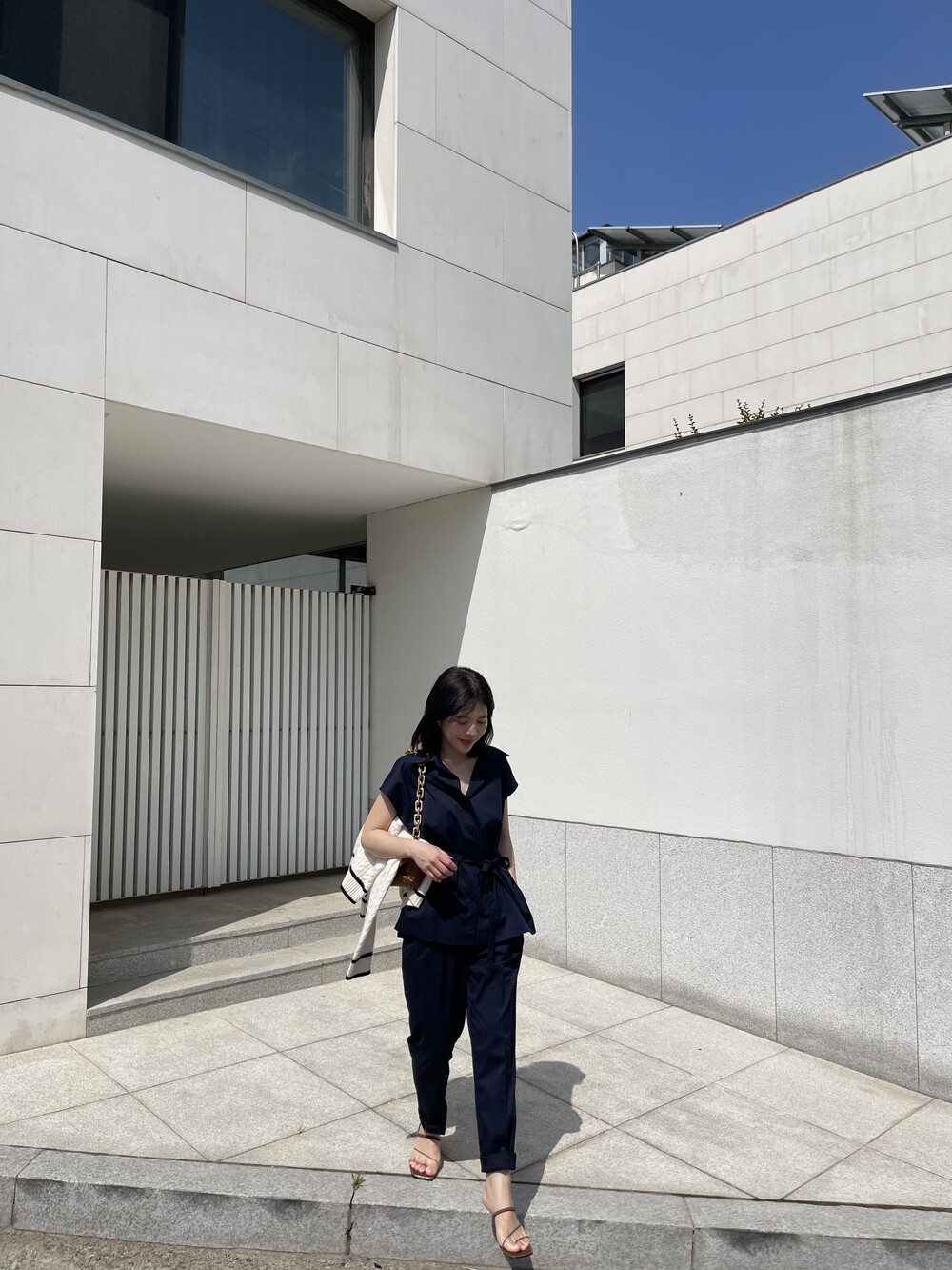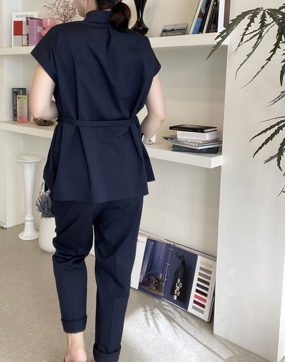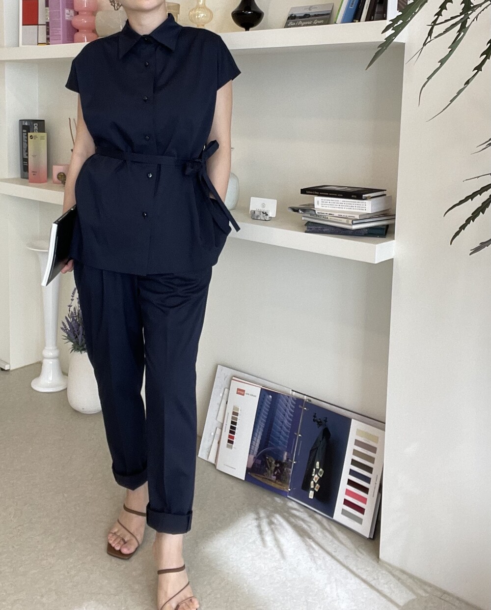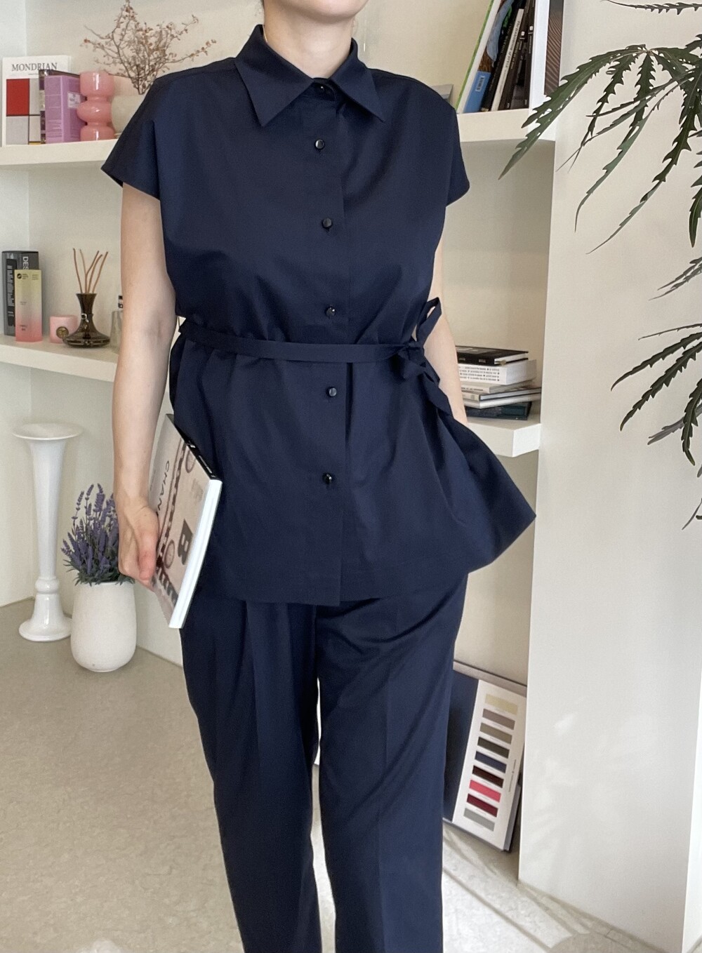 하나의 옷으로 캐쥬얼하게 그리고 무더운 여름에도 단정한 셋업룩이 필요하실때마다 여러가지 연출로 귀하게 잘 입어지실거에요. 컬러는 오션네이비 컬러로 많이 파랗지 않으며, 얼굴톤을 화사하게 잡아주는 톤 다운된 안정감 있는 네이비 컬러로 진행됩니다.
