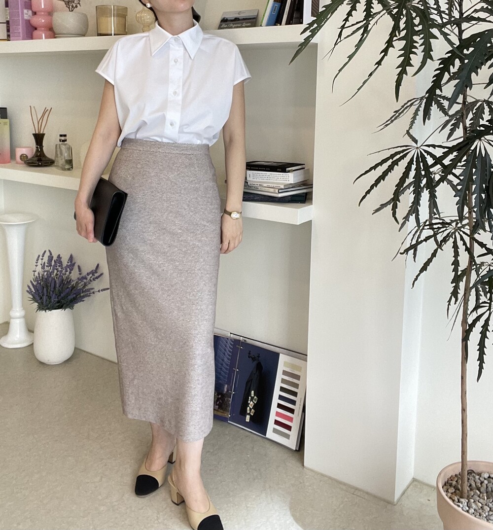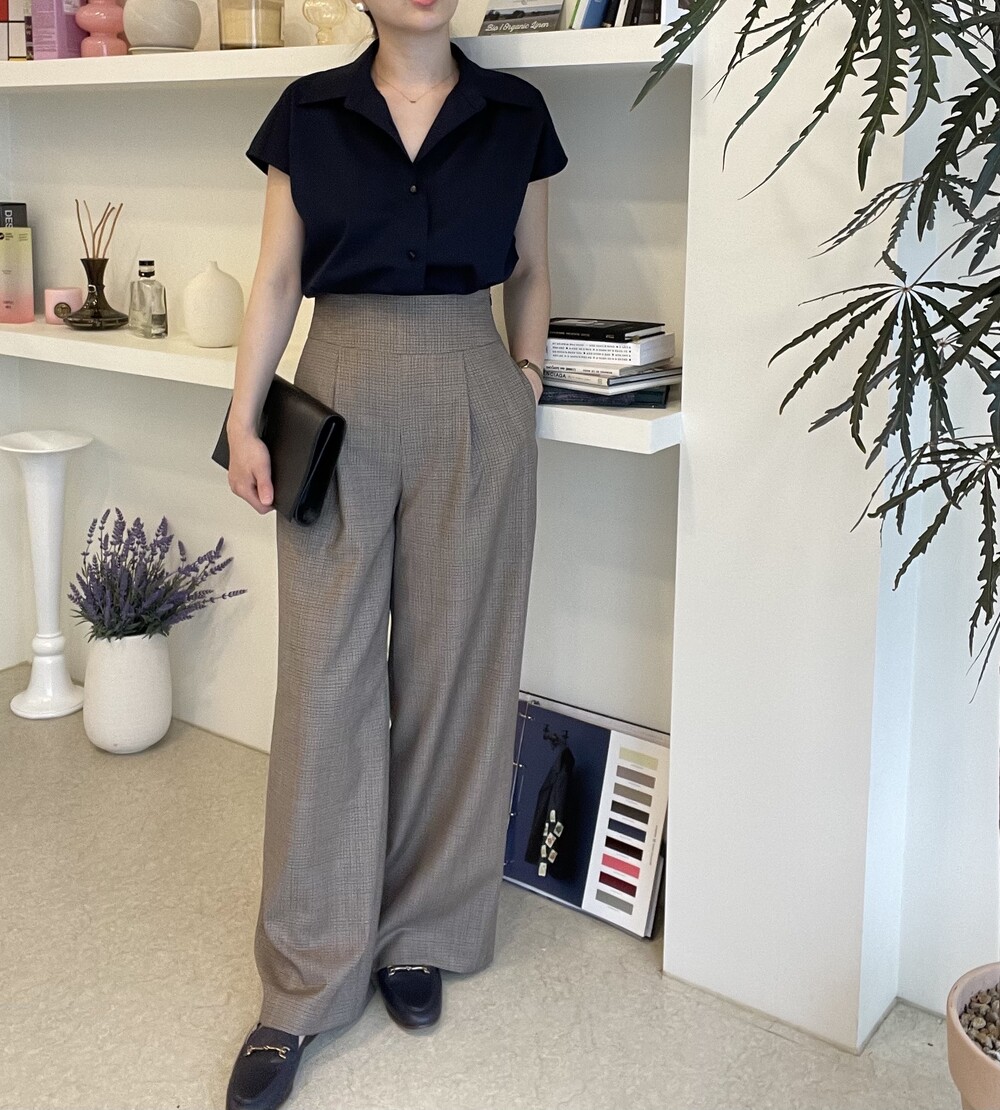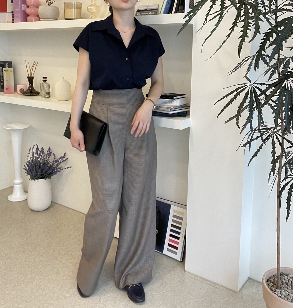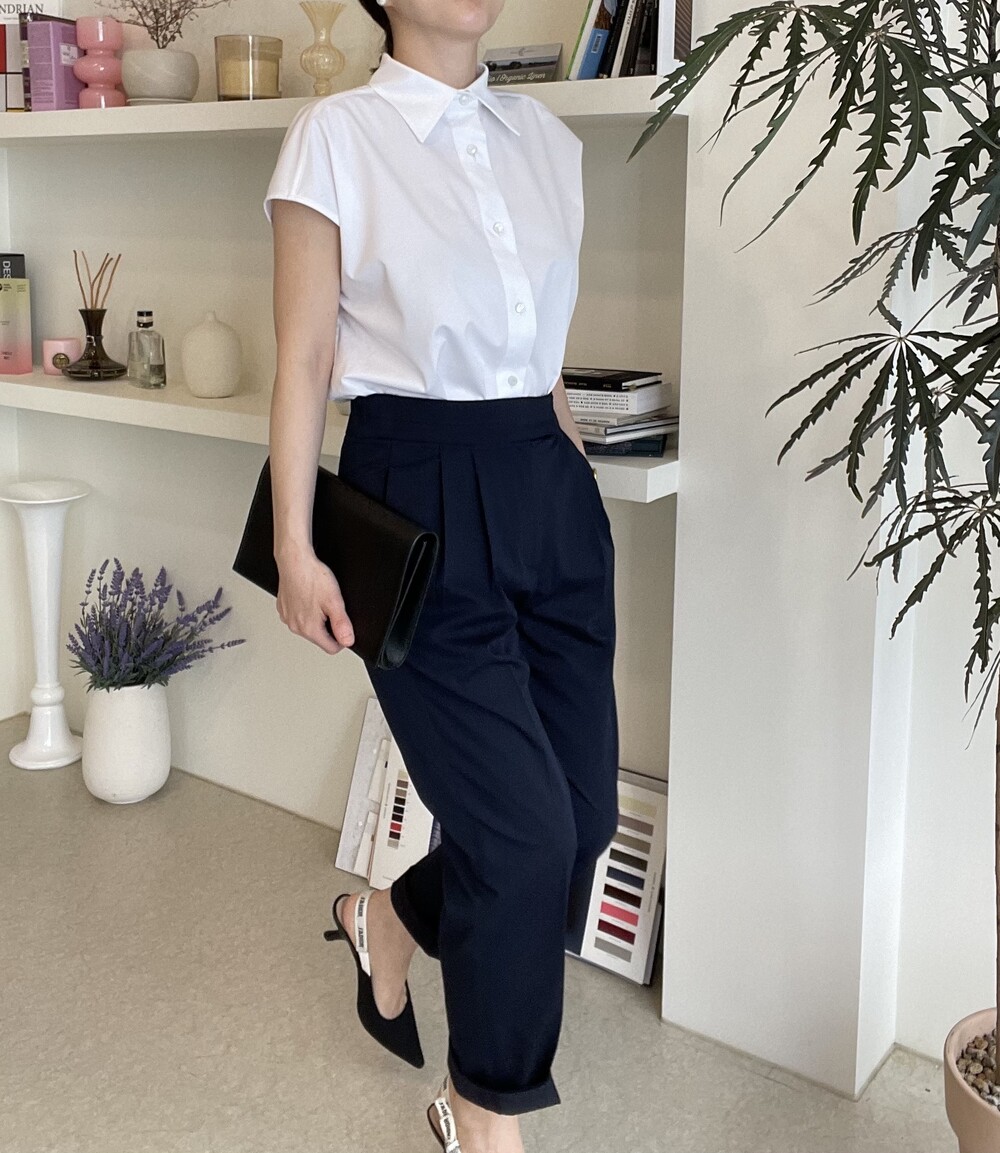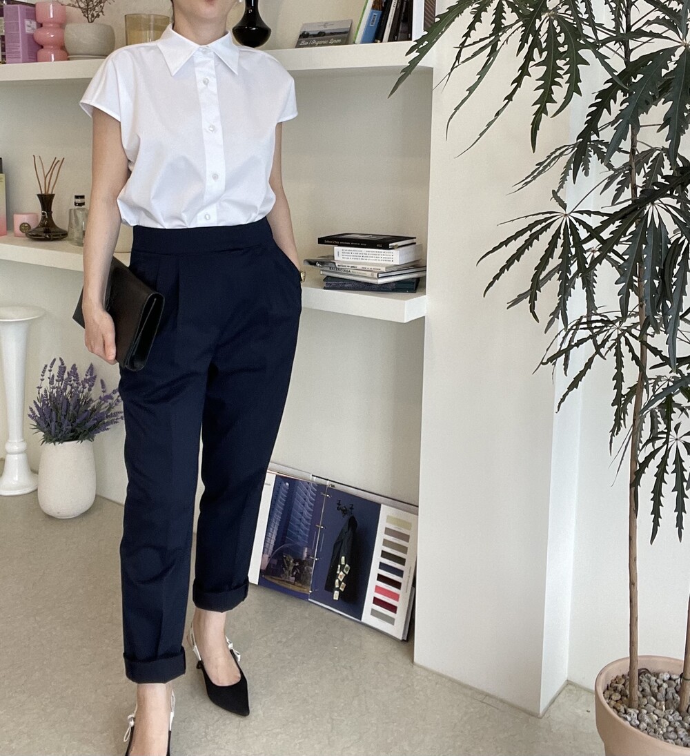 22년도 여름에는 새틴소재로 보여드렸던 블라우스였는데, 이번엔 세번수 코튼 혼방소재의 코튼 셋업으로 한여름에도 단정한 셋업 연출이 가능하도록 만들어졌습니다.