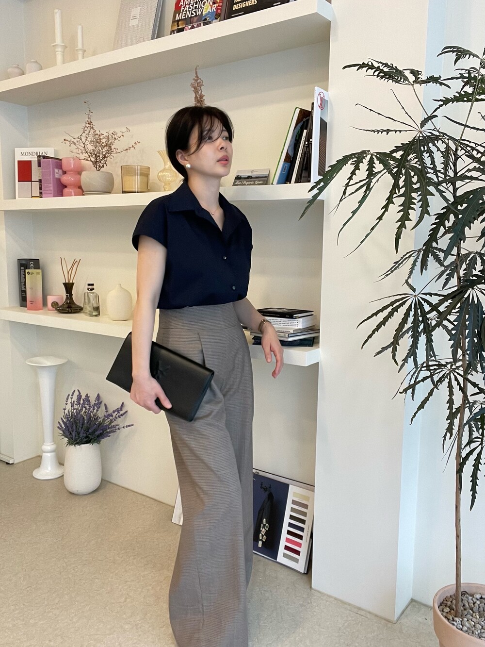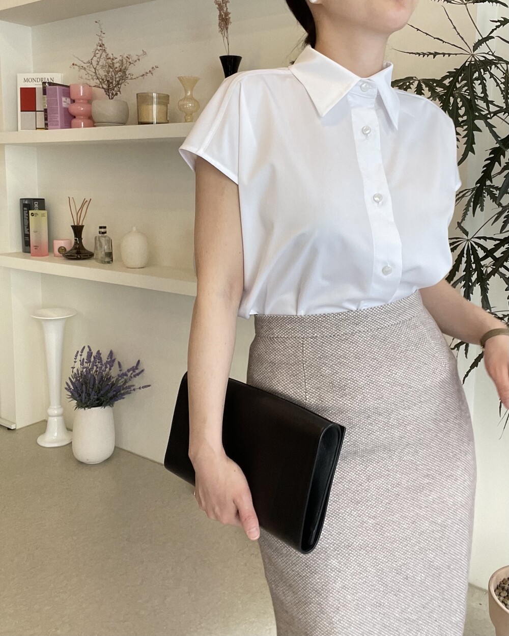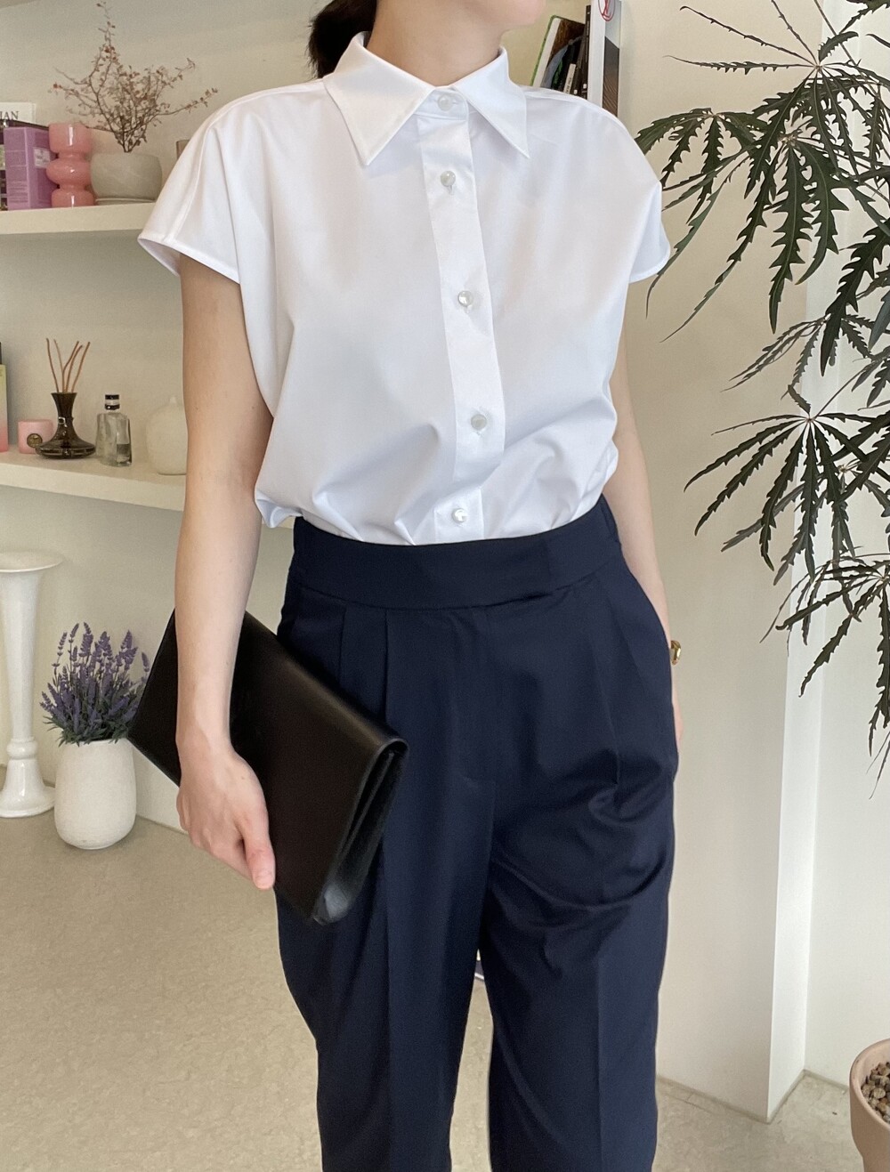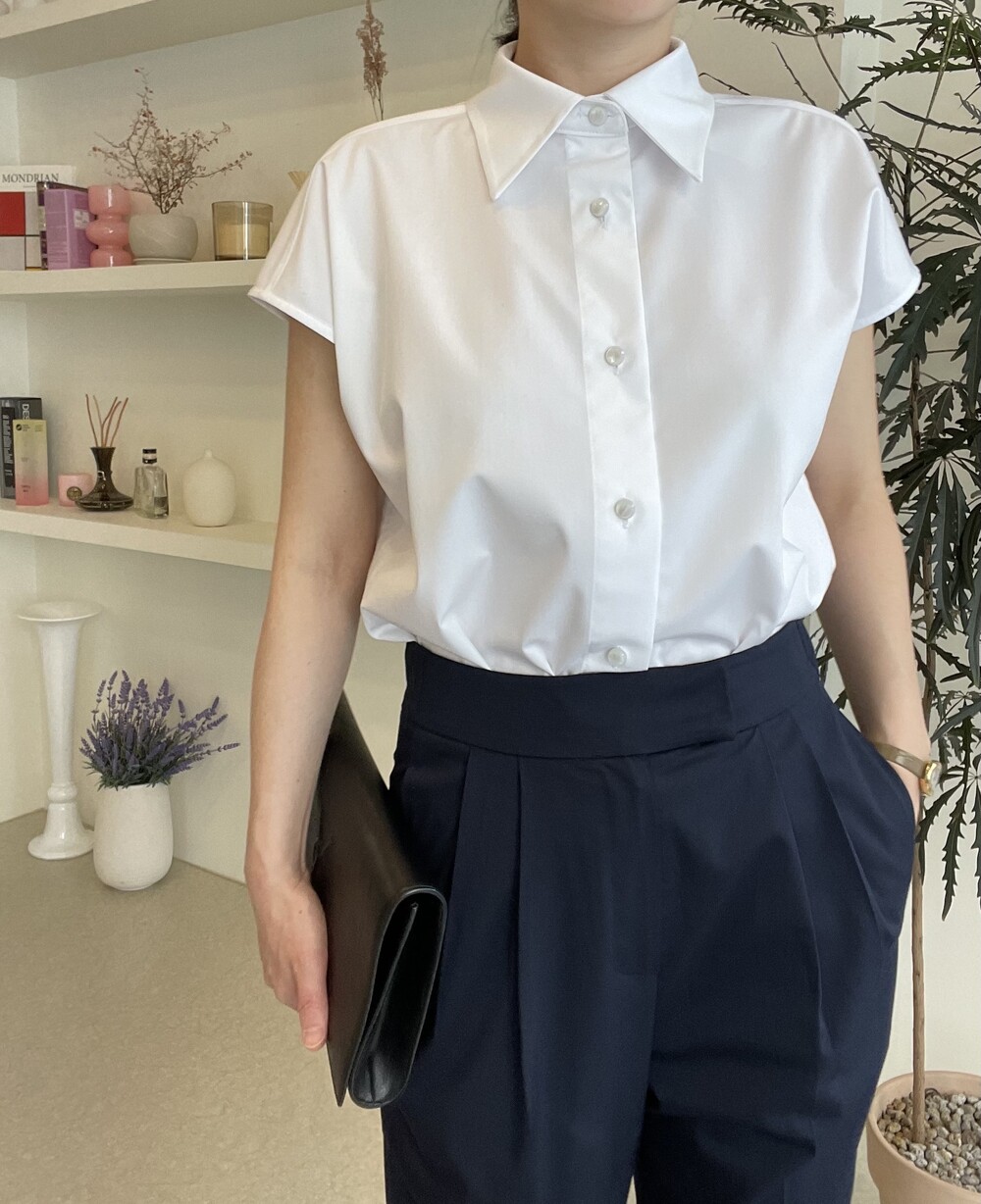 22년도 여름에는 새틴소재로 보여드렸던 블라우스였는데, 이번엔 세번수 코튼 혼방소재의 코튼 셋업으로 한여름에도 단정한 셋업 연출이 가능하도록 만들어졌습니다.