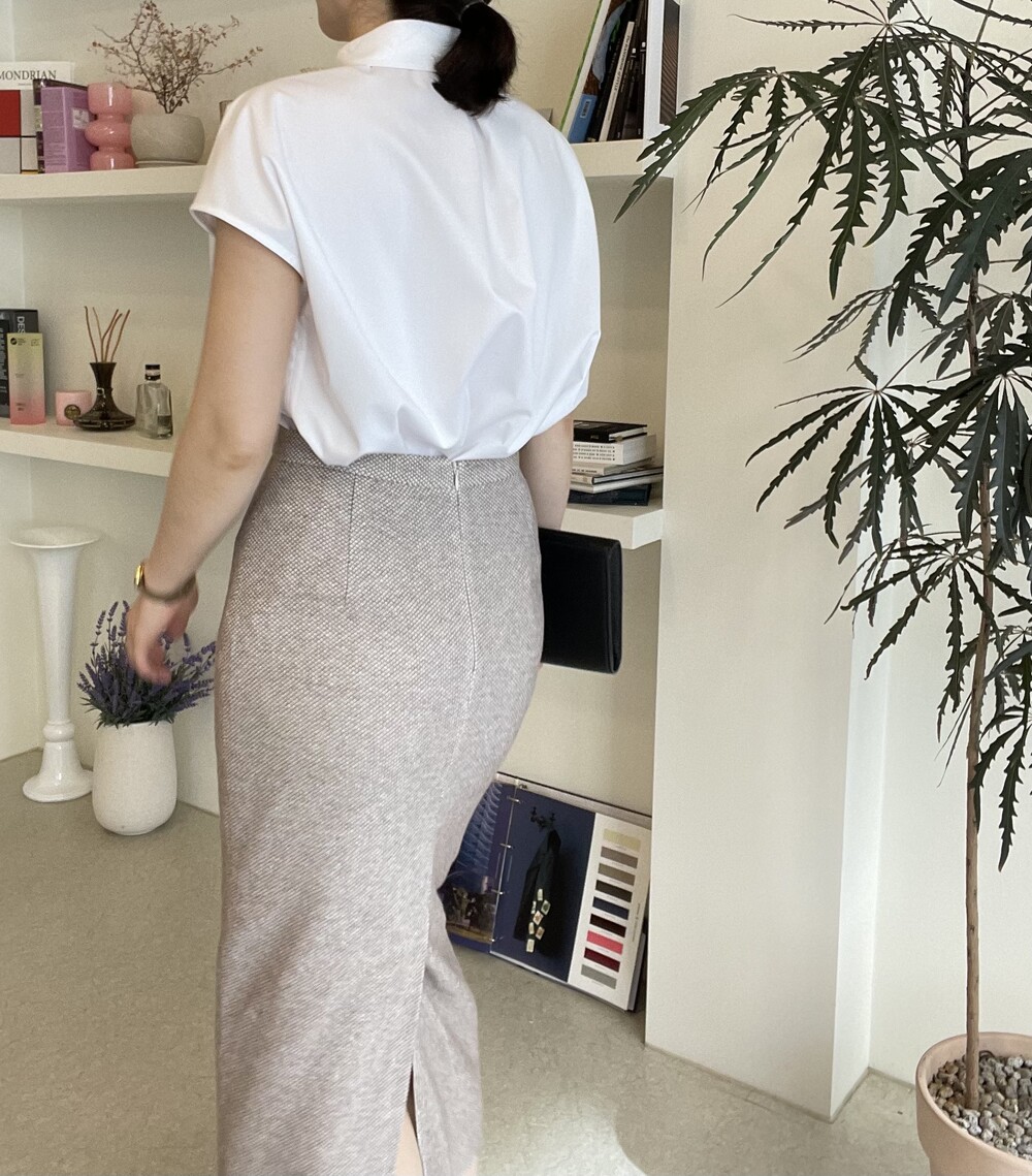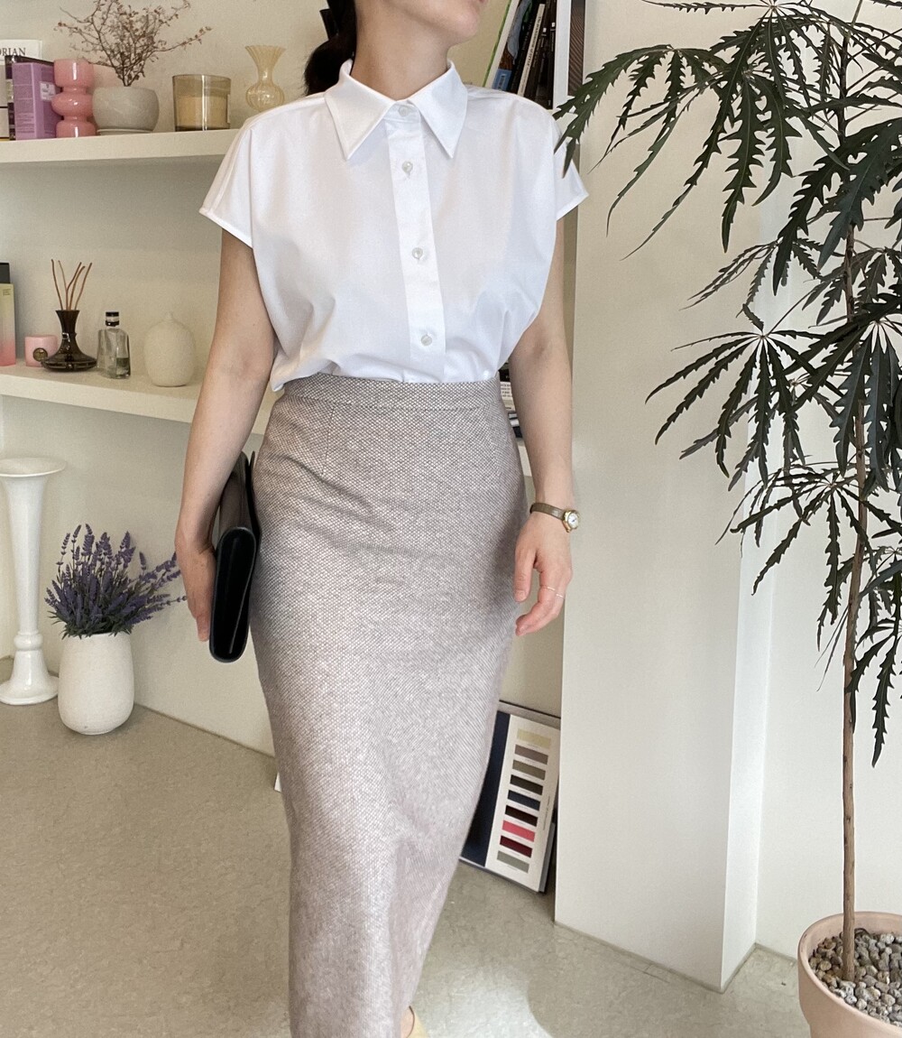 카라가 살짝 긴형태라서 단추를 다 채워도 답답해 보이지 않으며, 목둘레에 여유가 있어 갑갑하지 않은 착용감을 연출합니다. 어깨선은 살짝 내려와 팔의 군살을 좀더 커버해주며, 동시에 단정하고 세련된 느낌을 부여해 줍니다.